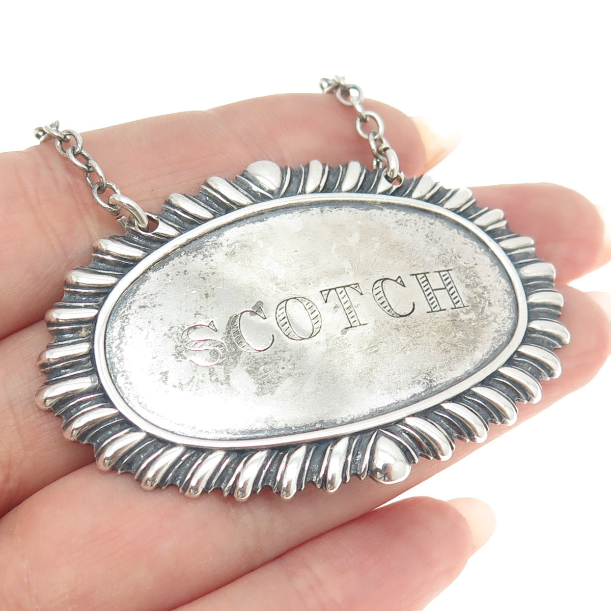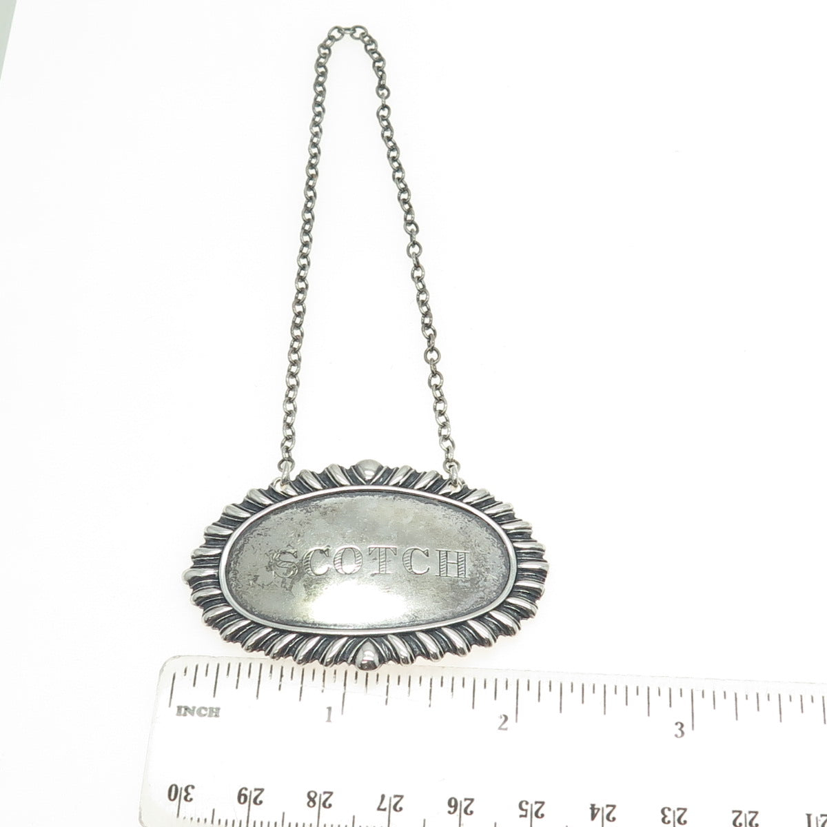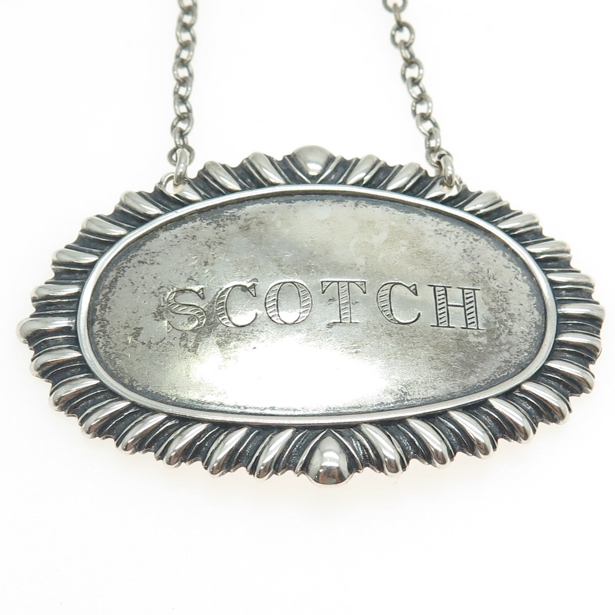 925 Sterling Silver Antique Art Deco "Scotch" Bottle Tag 8"