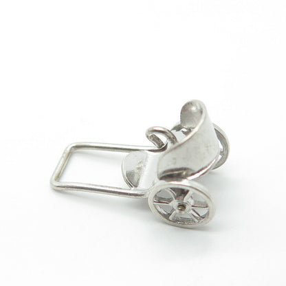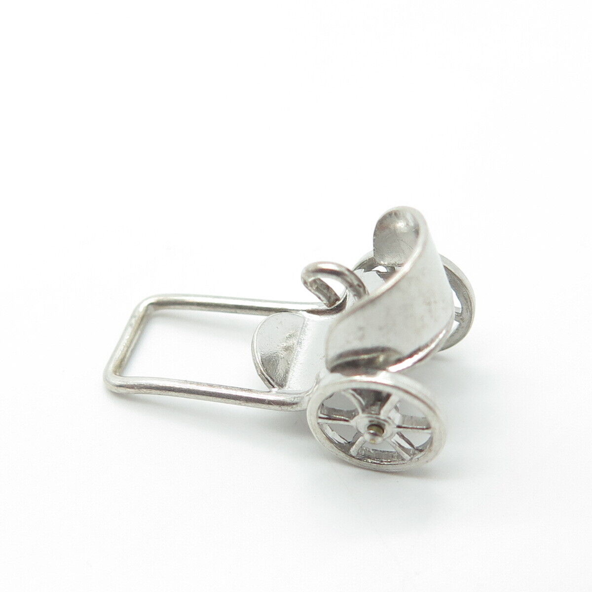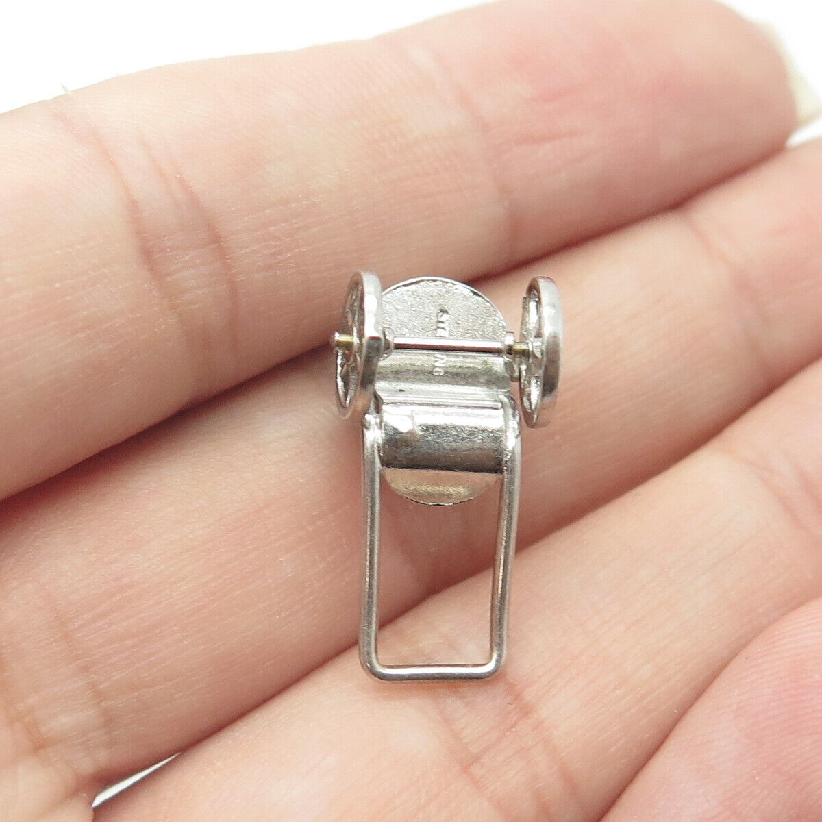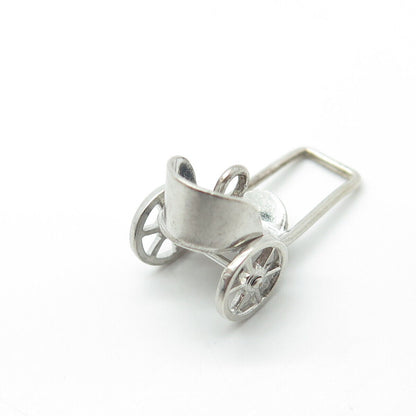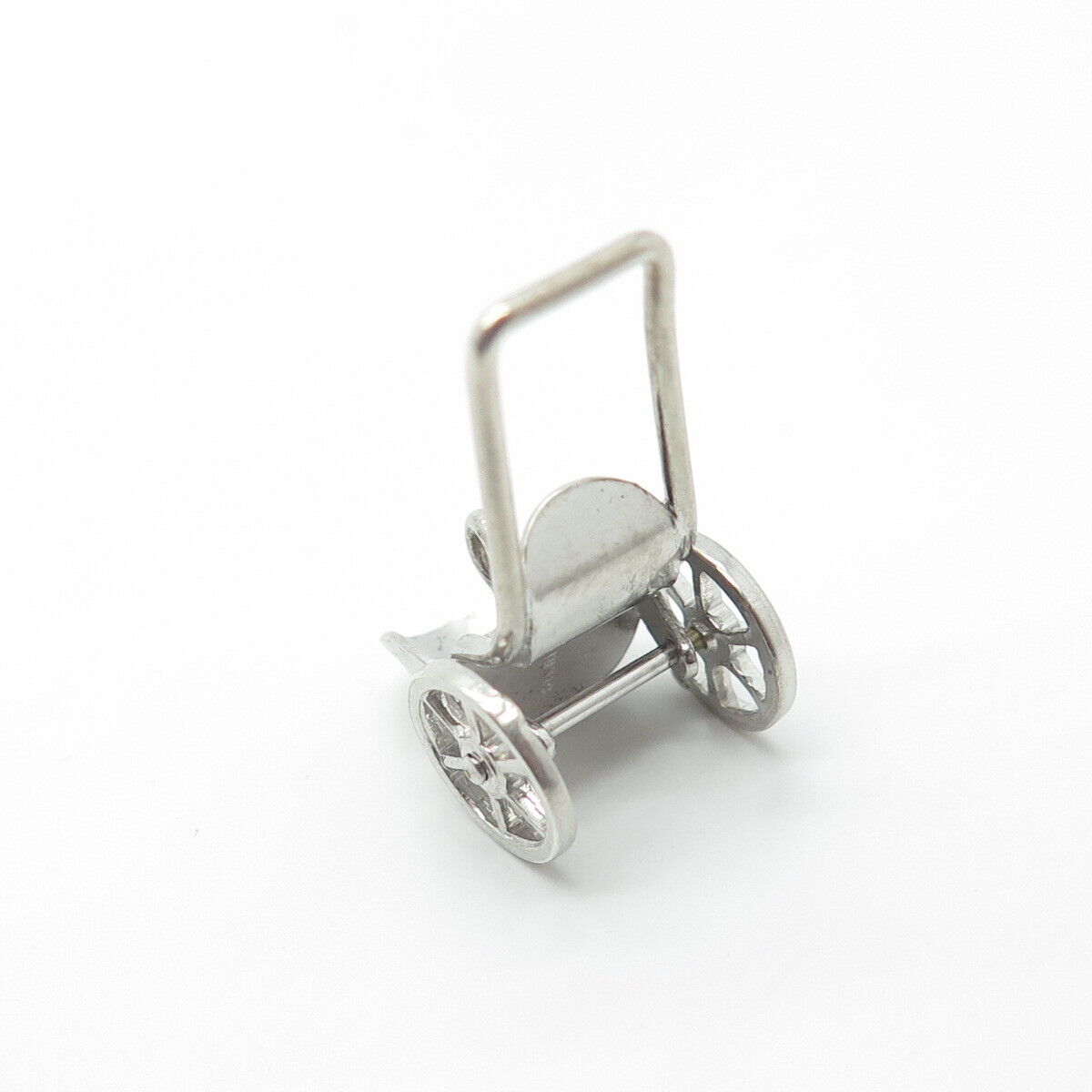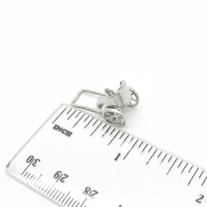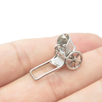 925 Sterling Silver Antique Art Deco Wheeled Cart Moveable 3D Charm Pendant