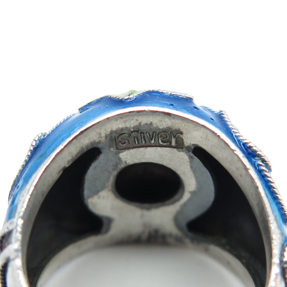925 Sterling Silver Antique Chinese Enamel Grape Vine Adjustable Ring Size 6