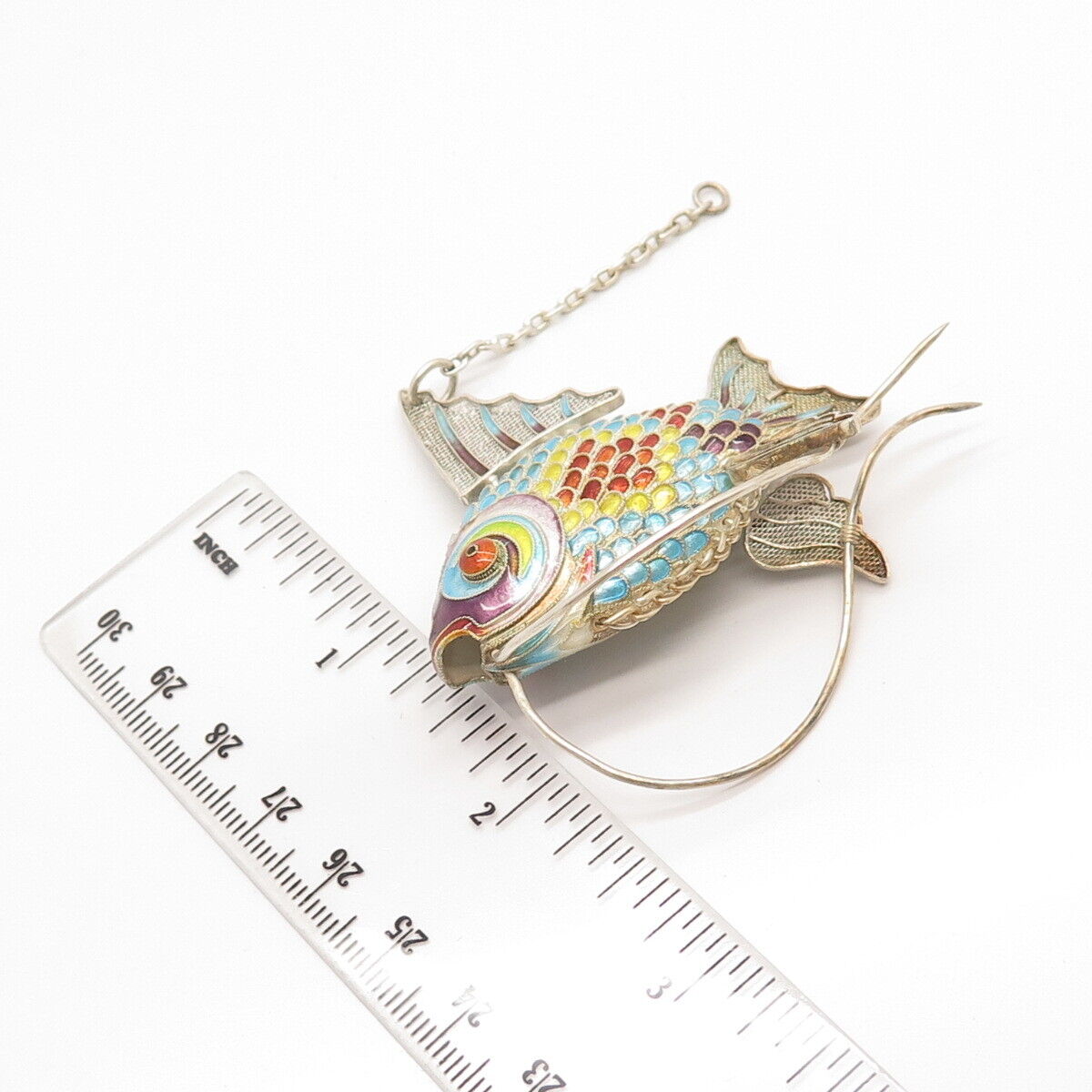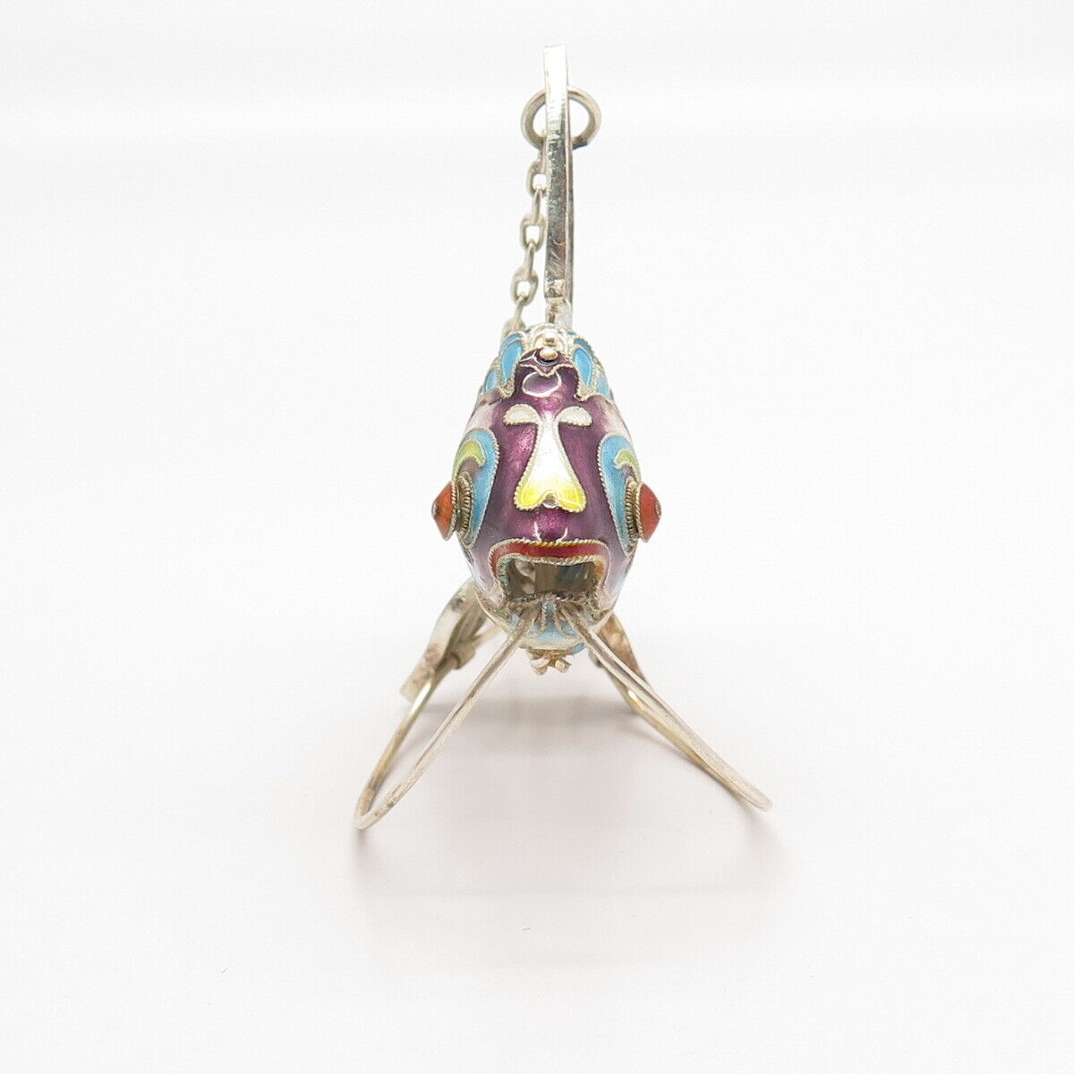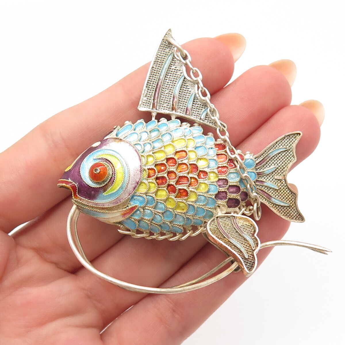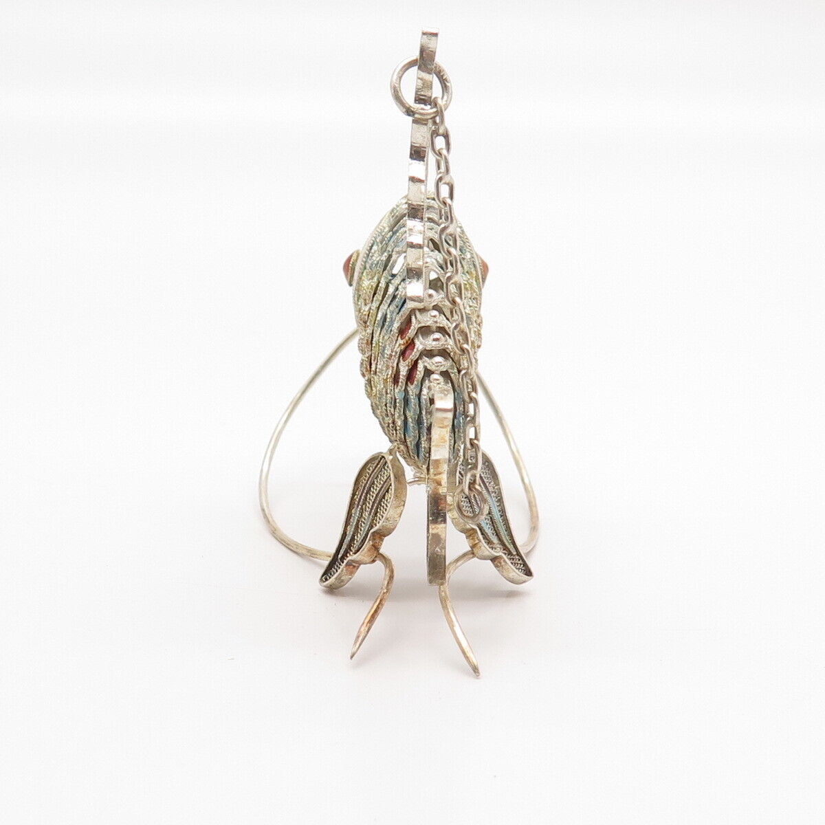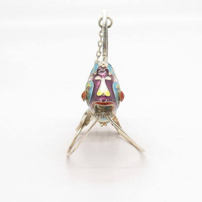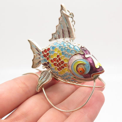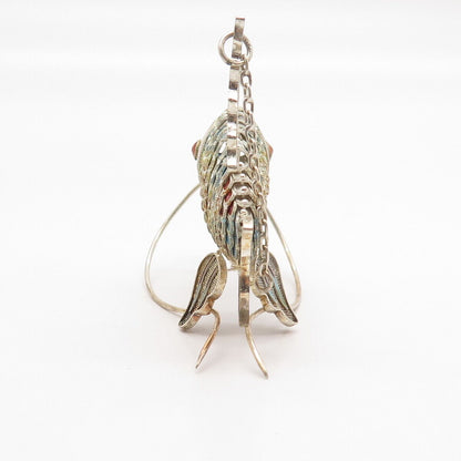 925 Sterling Silver Antique Colorful Enamel Articulated Chinese Koi Fish Fob