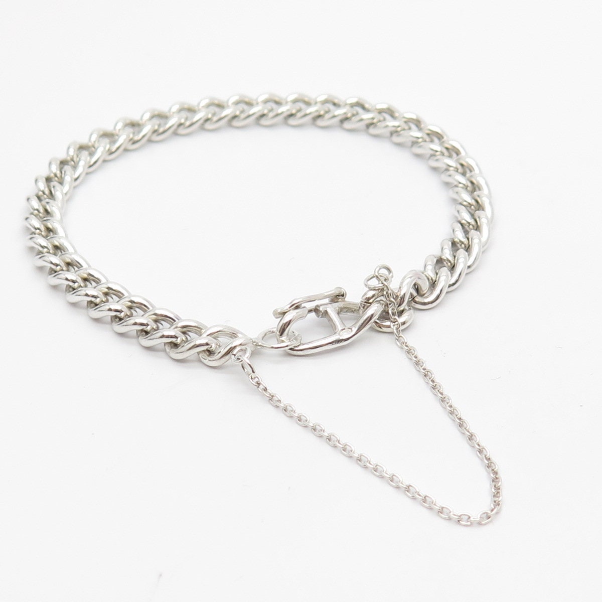 925 Sterling Silver Antique Cuban Link Bracelet w/Chain 7"