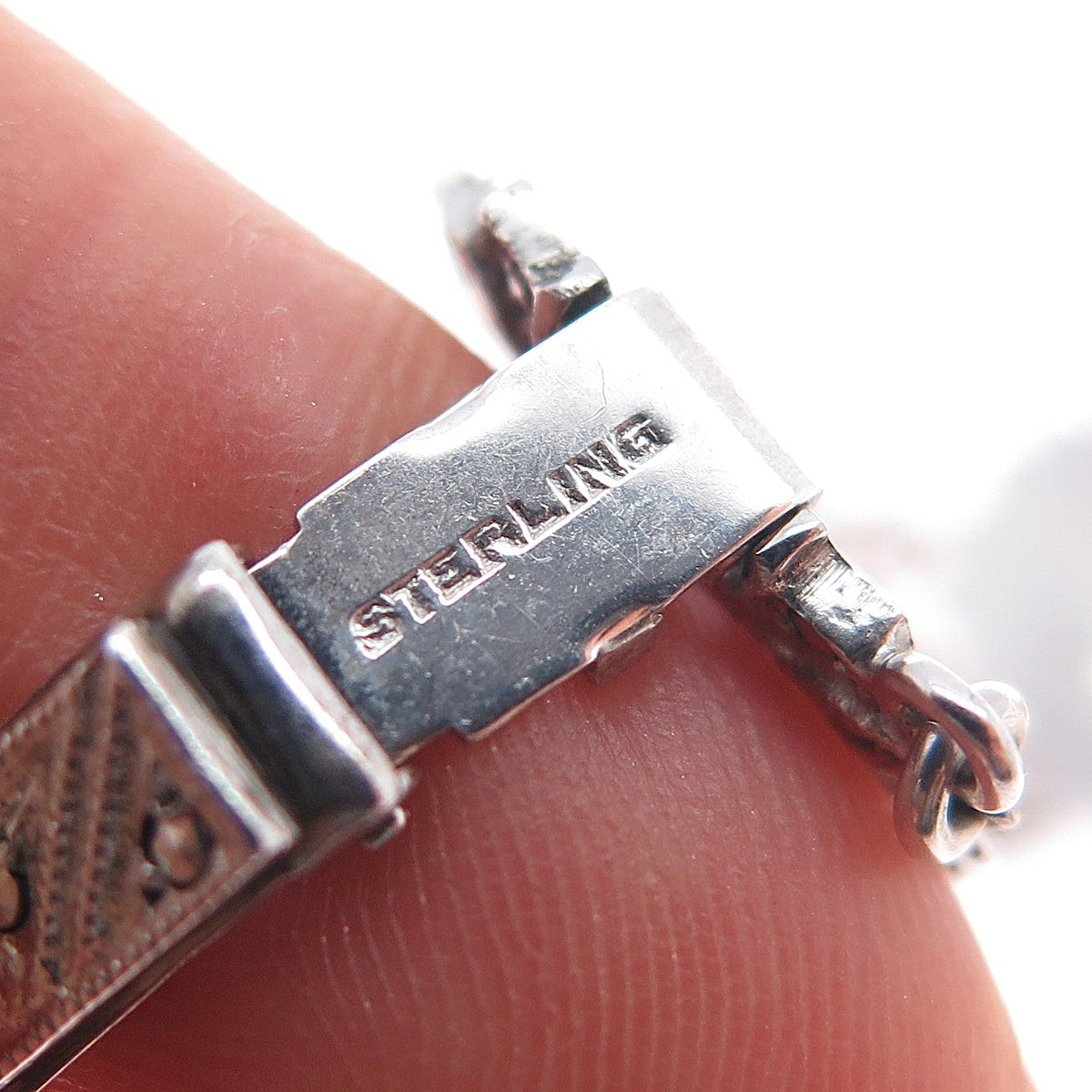 925 Sterling Silver Antique Marcasite Flower Bracelet 6.75" (missing 2 stones)