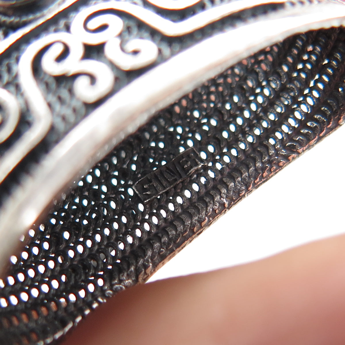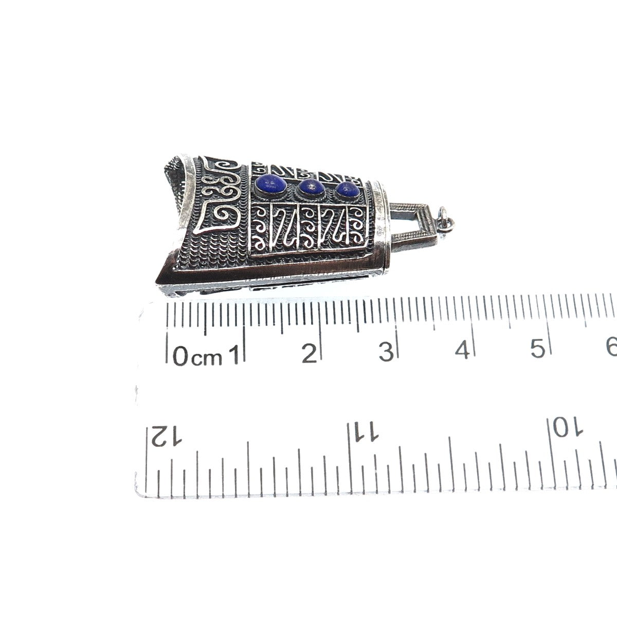 925 Sterling Silver Antique Real Lapis Chatelaine Filigree Box Oxidized Pendant