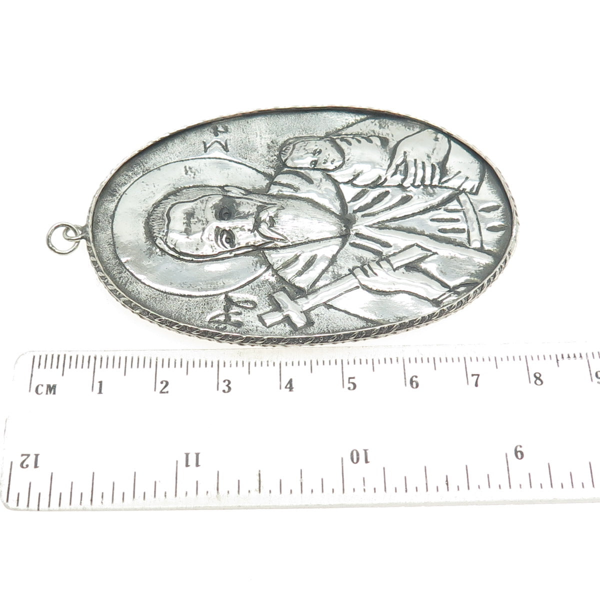 925 Sterling Silver Antique Saint Joseph Religious Medal Repousse Pendant