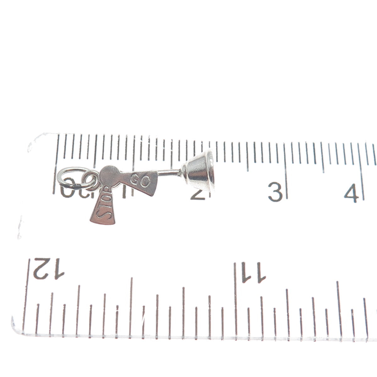 925 Sterling Silver Antique Stop & Go Train Tracks Sign Minimalist 3D Pendant