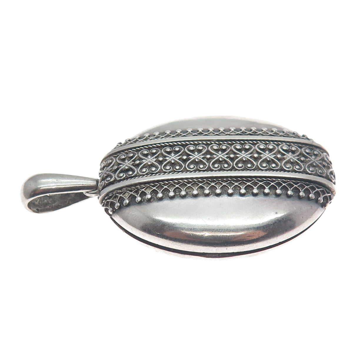 925 Sterling Silver Antique Victorian Ornate Heart Oval Locket Oxidized Pendant