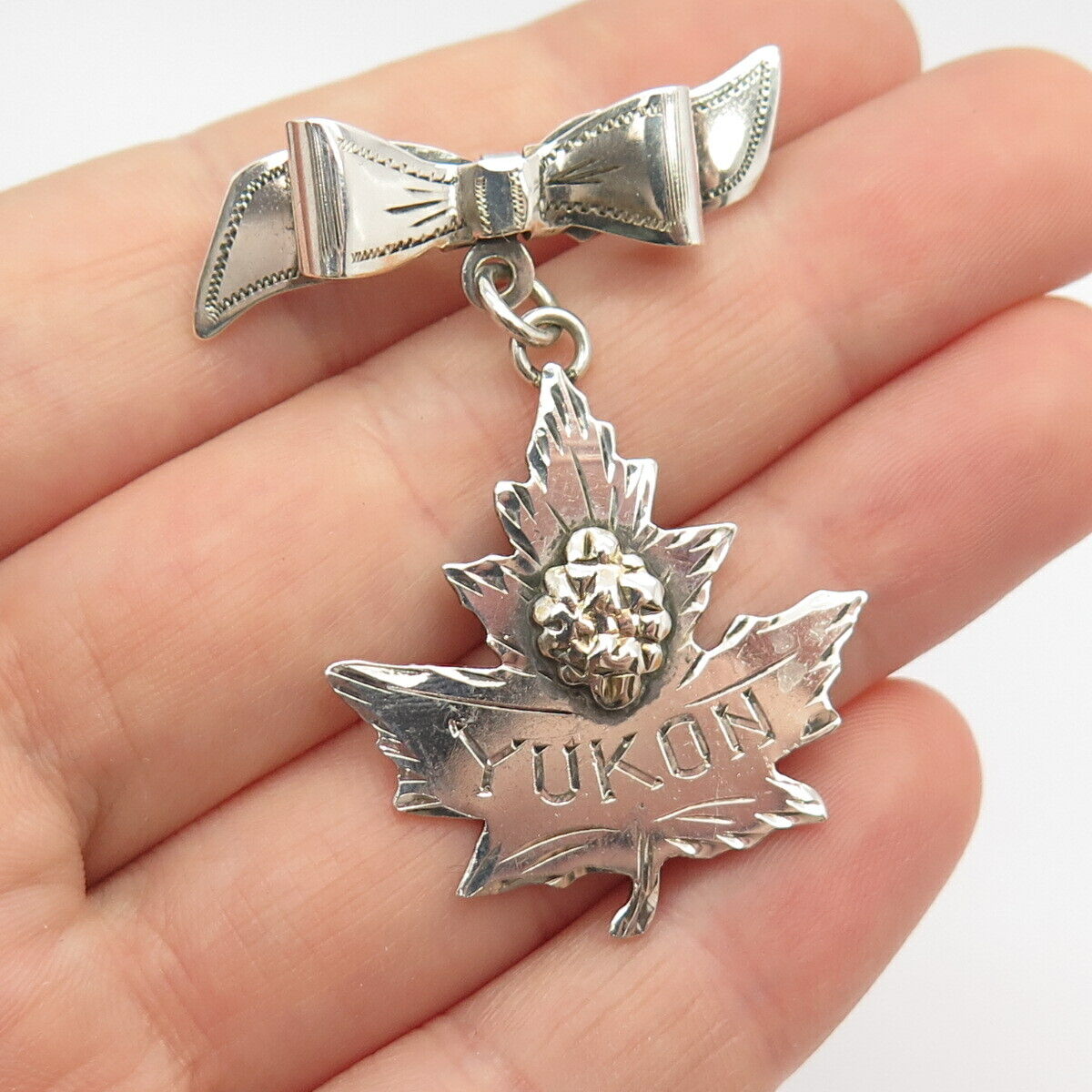 925 Sterling Silver Antique "Yukon" Maple Leaf Pin Brooch