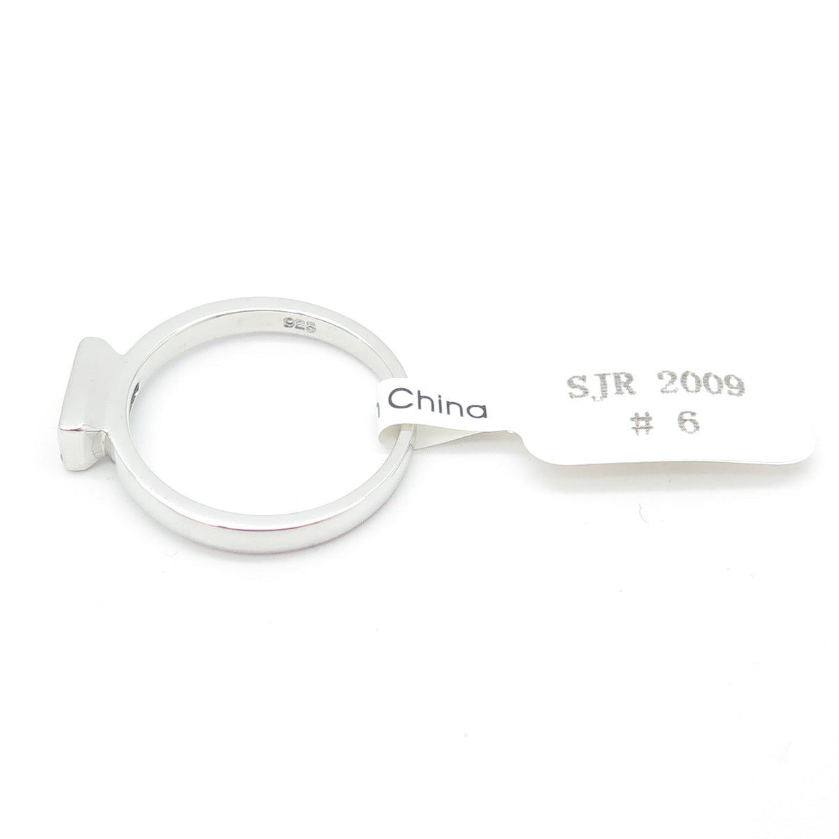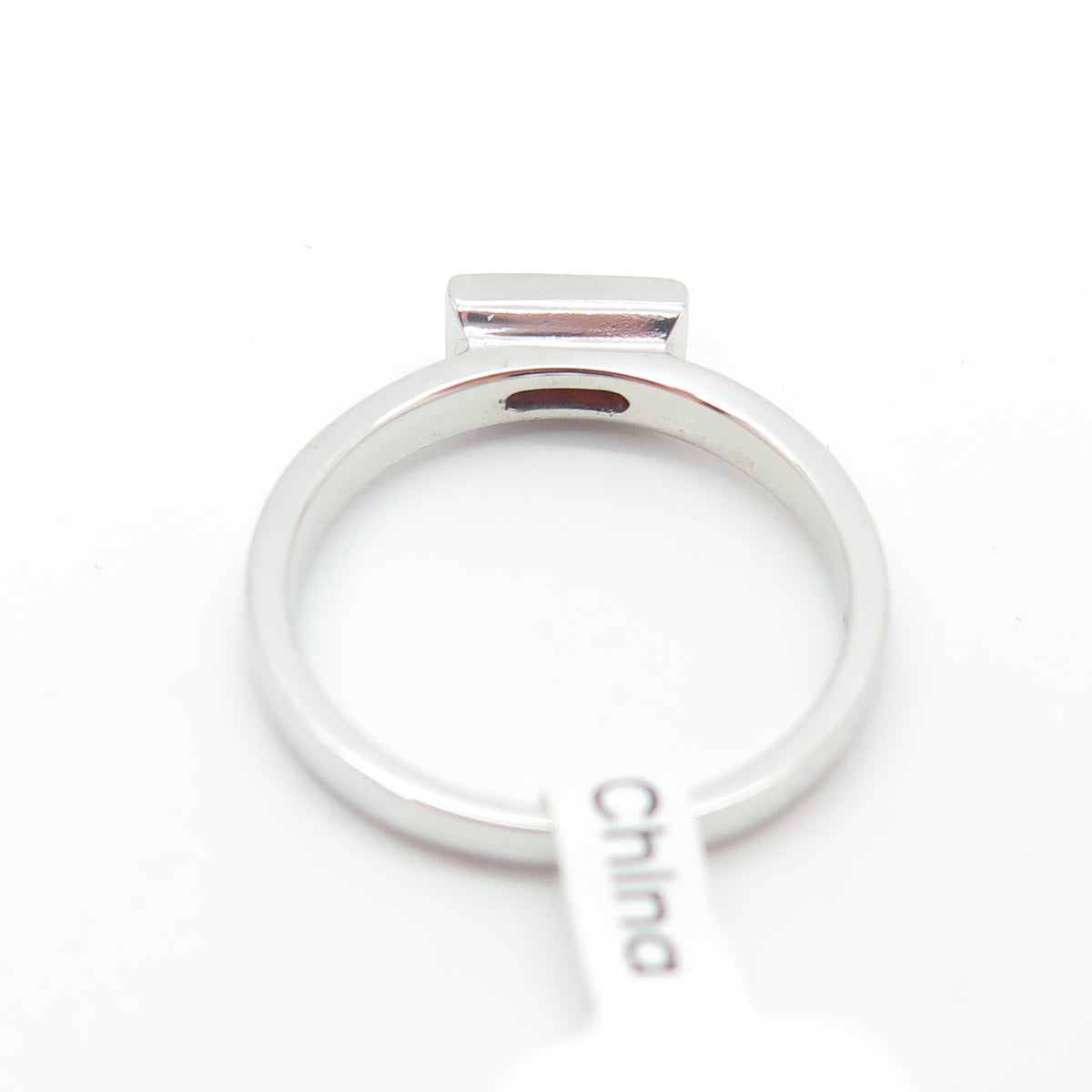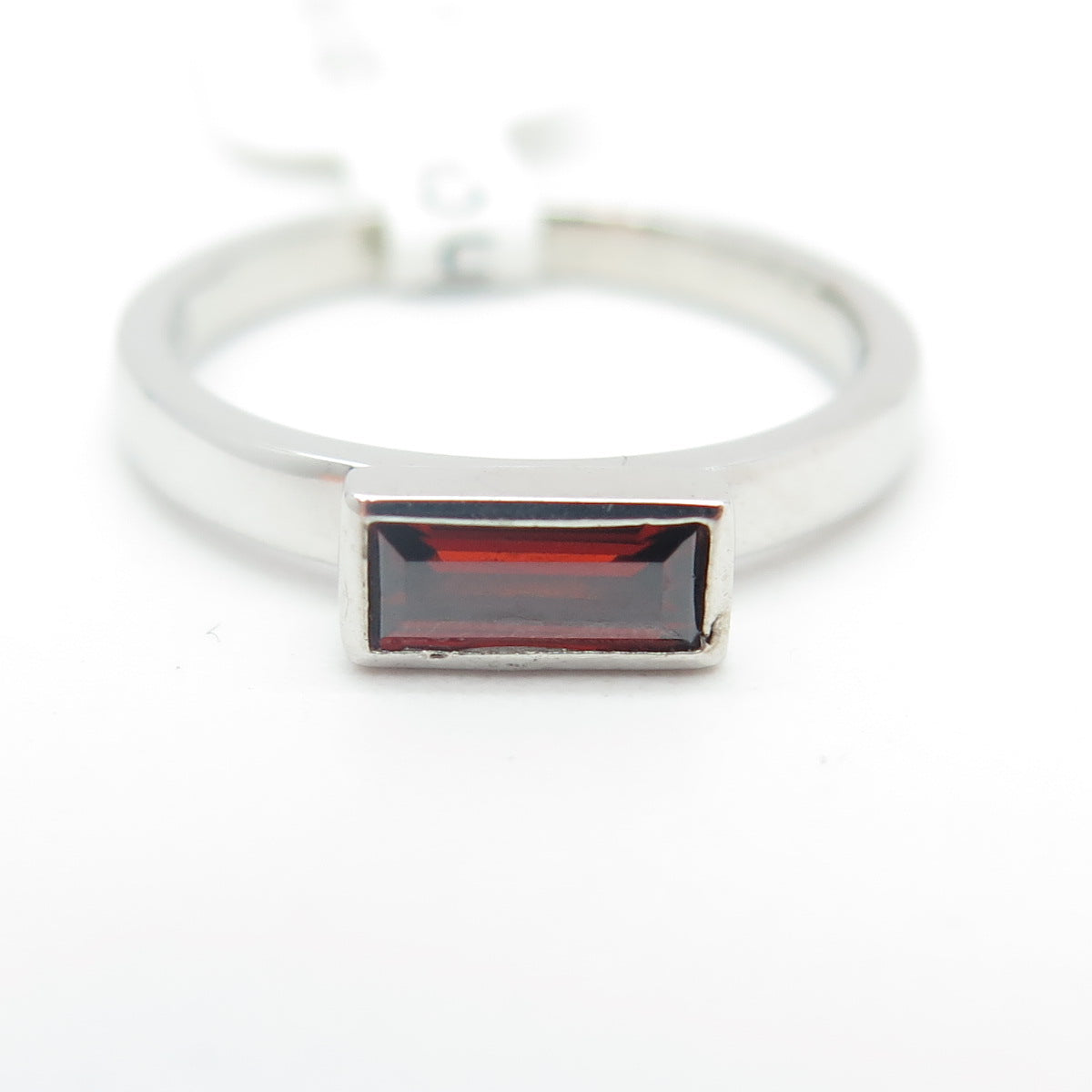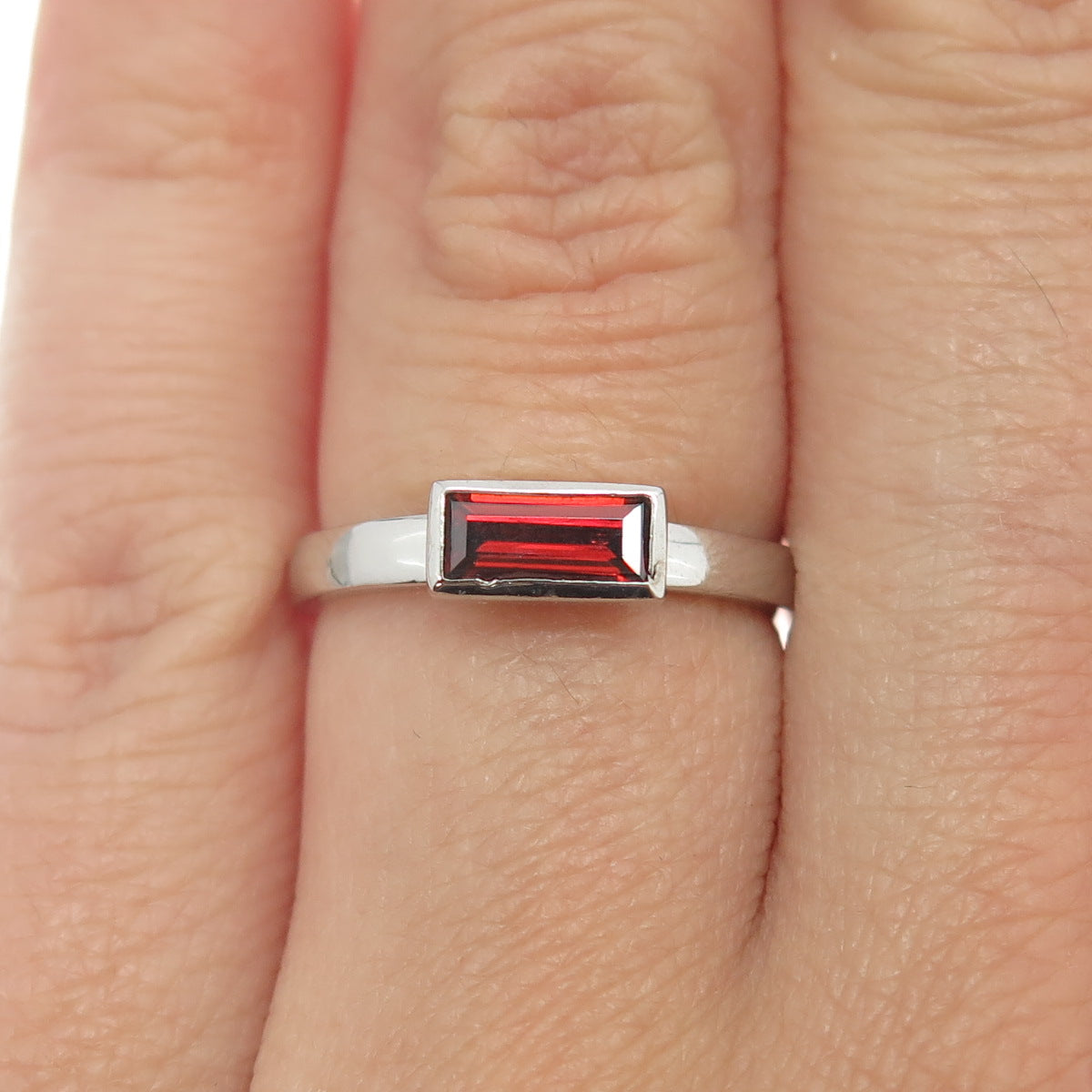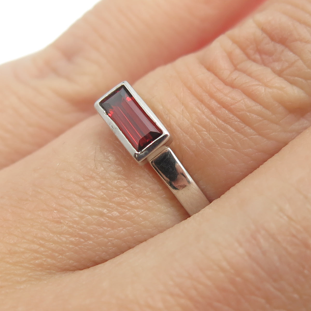 925 Sterling Silver Baguette-Cut Shaped Red C Z Ring Size 5.75