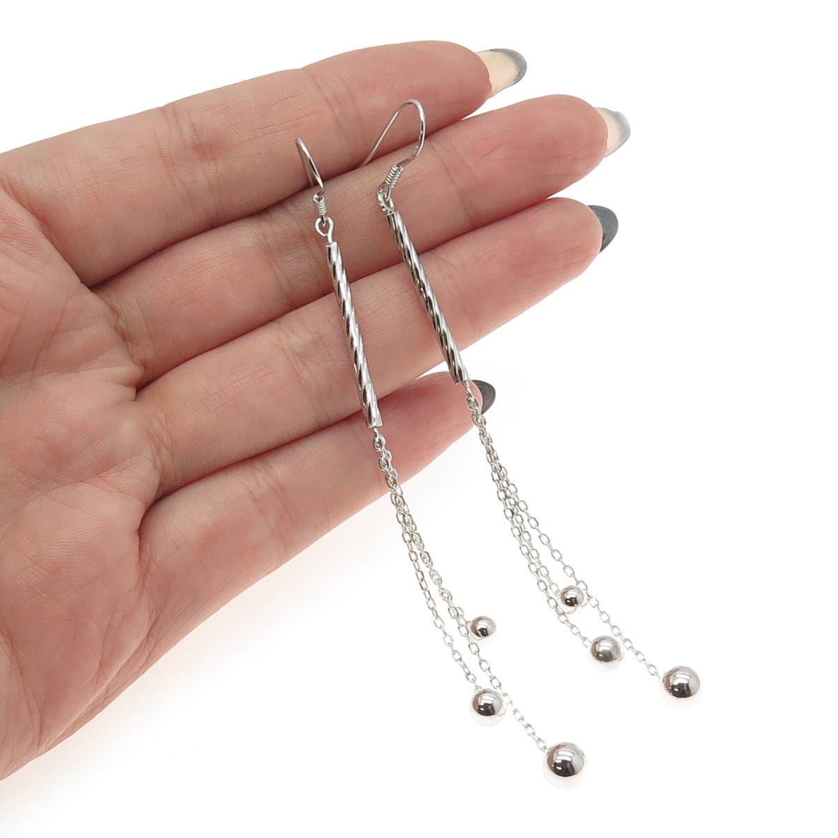 925 Sterling Silver Ball Chain Dangling Hook Earrings
