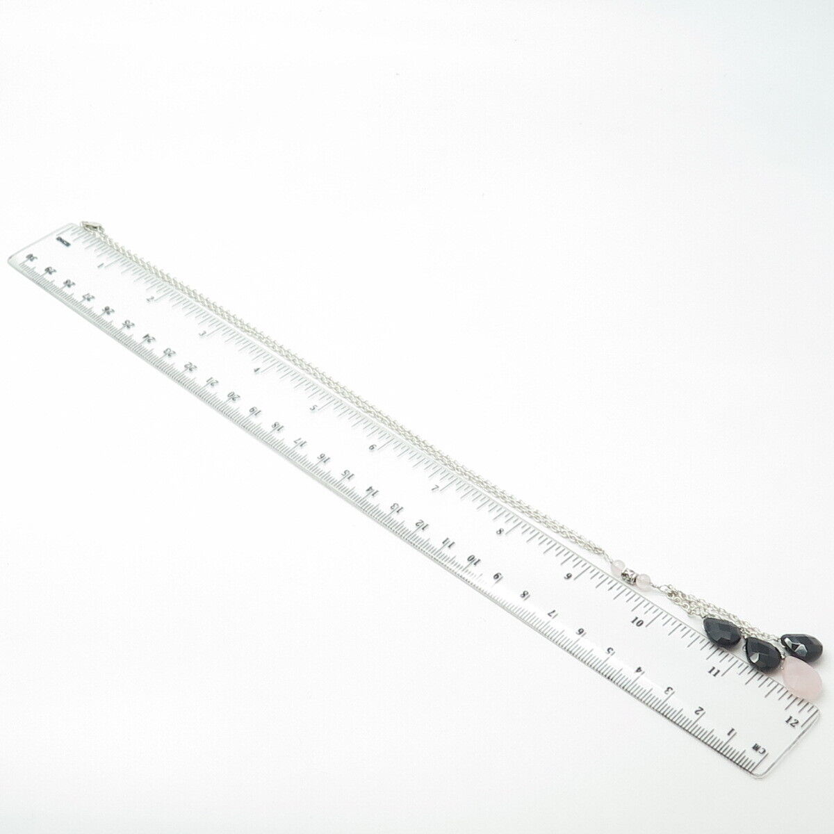 925 Sterling Silver Black Onyx & Rose Quartz Dangling Cable Chain Necklace 18"