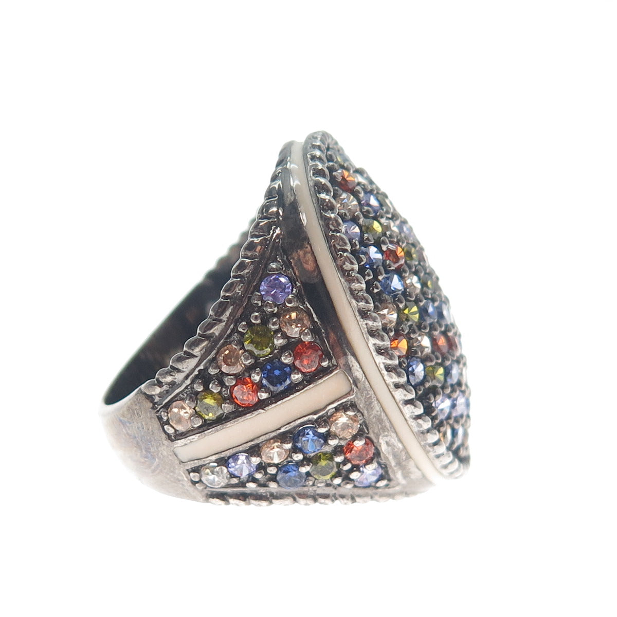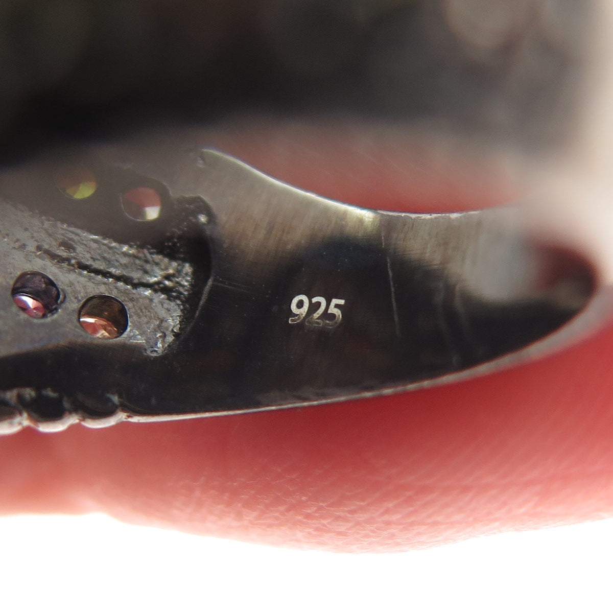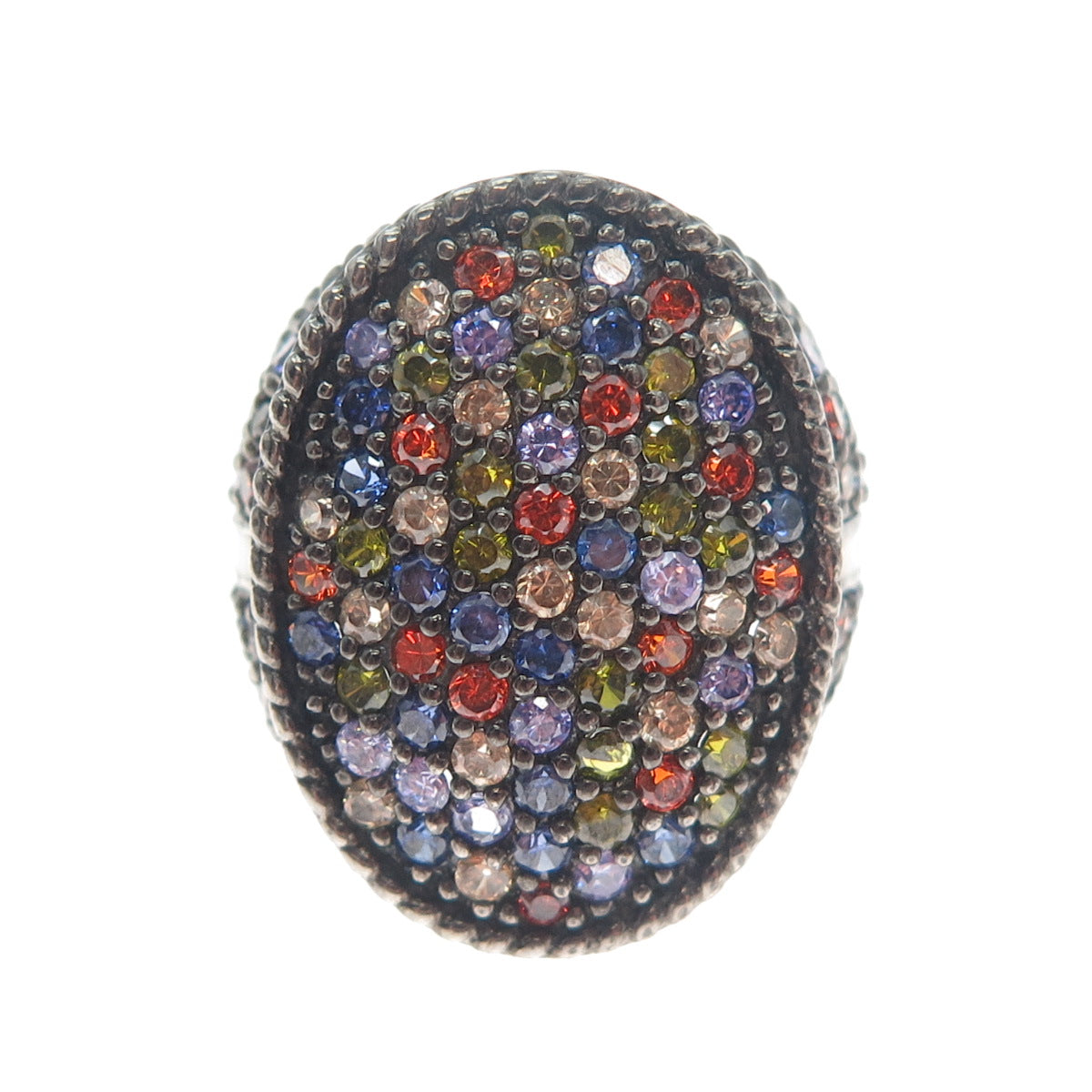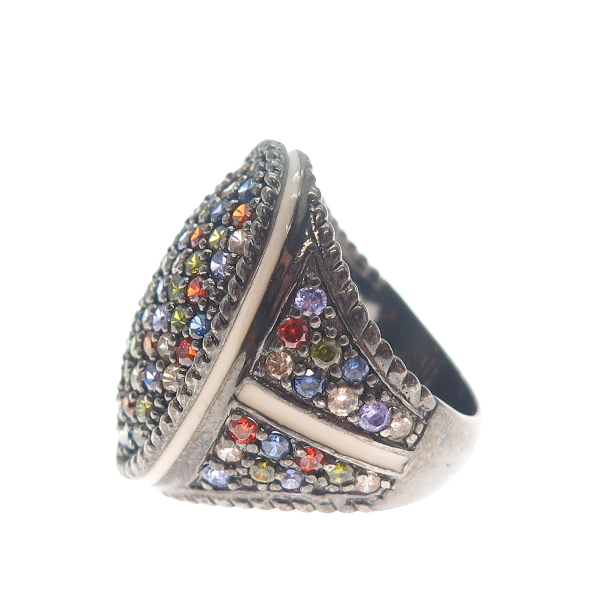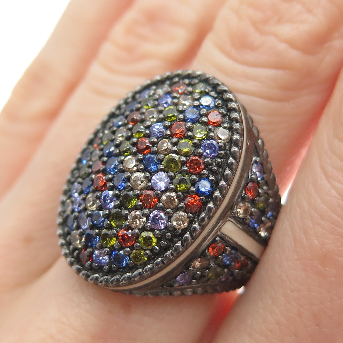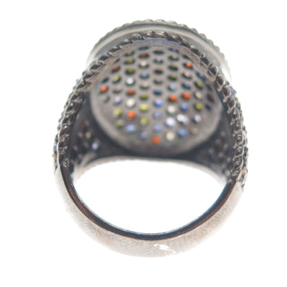 925 Sterling Silver Black Rhodium Enamel Multi-Color Gem Ring Size 7.5