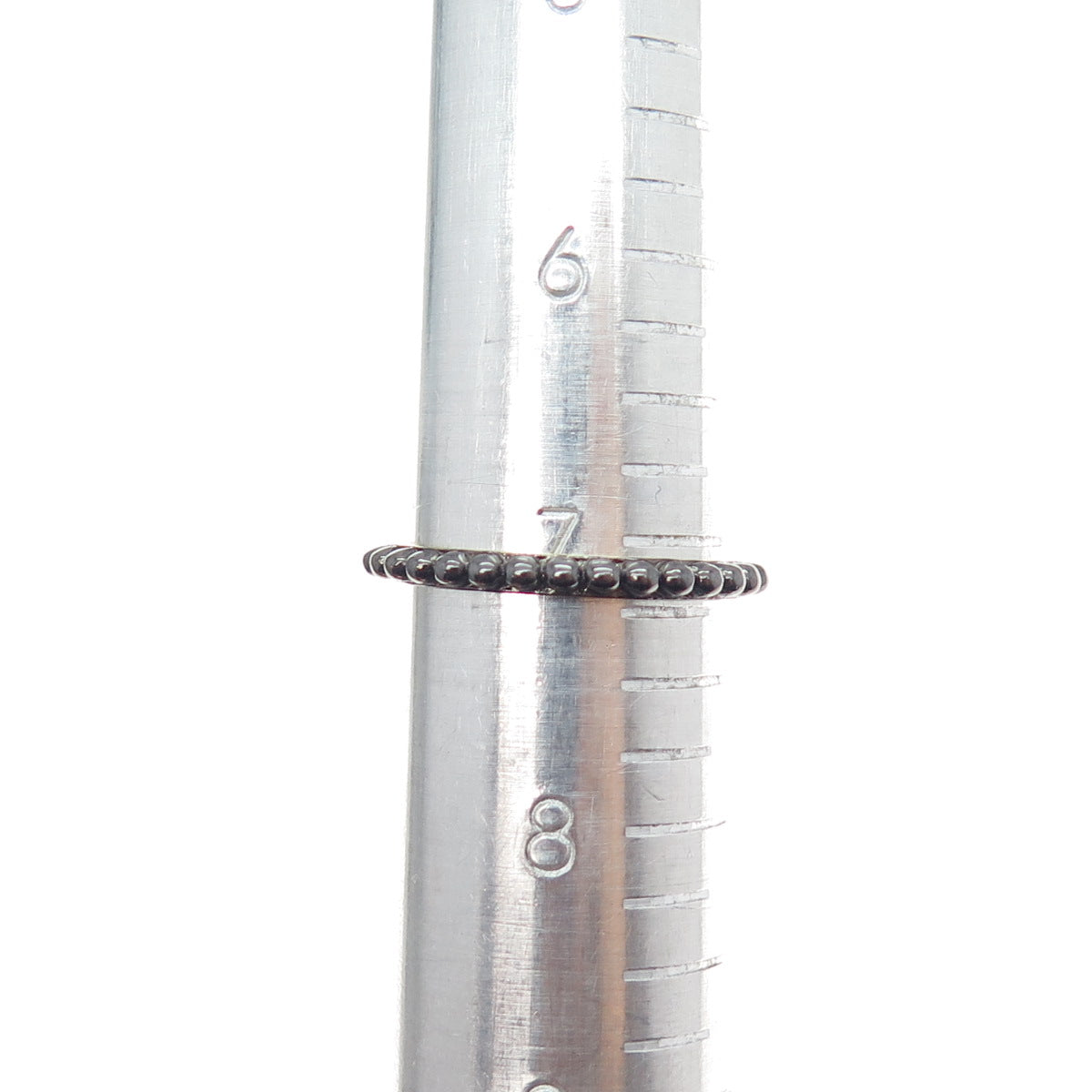 925 Sterling Silver Black Rhodium Gold Plated Beaded Band Ring Size 7.25