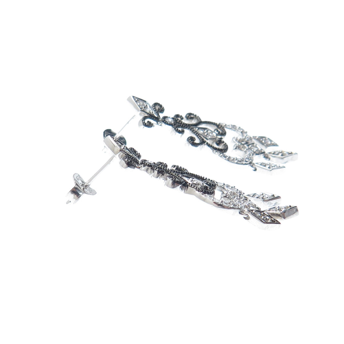 925 Sterling Silver Black Rhodium Round-Cut C Z Chandelier Dangle Earrings