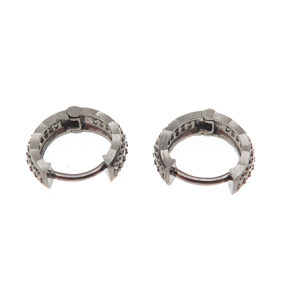 925 Sterling Silver Black Rhodium Round-Cut C Z Hoop Earrings