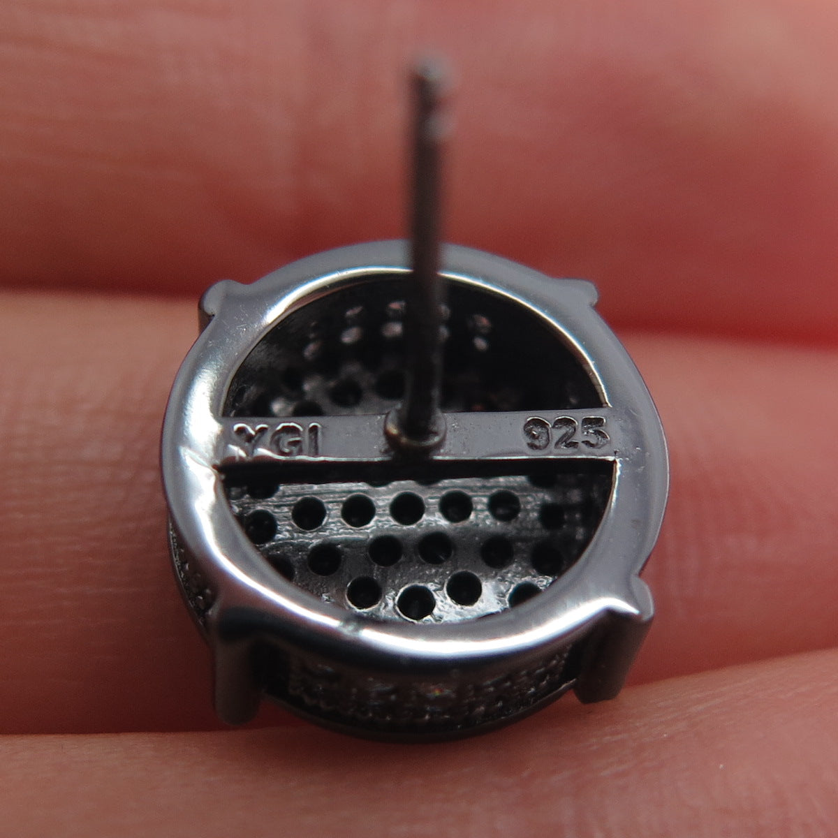 925 Sterling Silver Black Rhodium Round-Cut C Z Stud Earrings