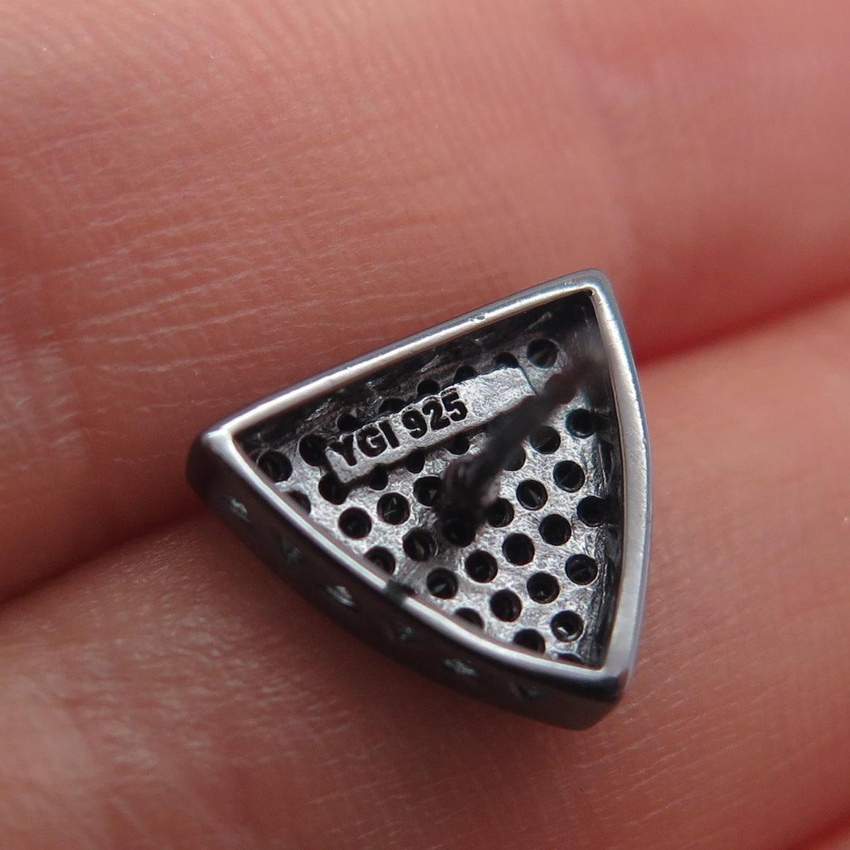 925 Sterling Silver Black Rhodium Round-Cut C Z Triangle Stud Earrings