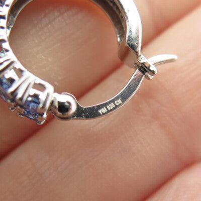 925 Sterling Silver Blue C Z Hinged Hoop w/Chain Earrings