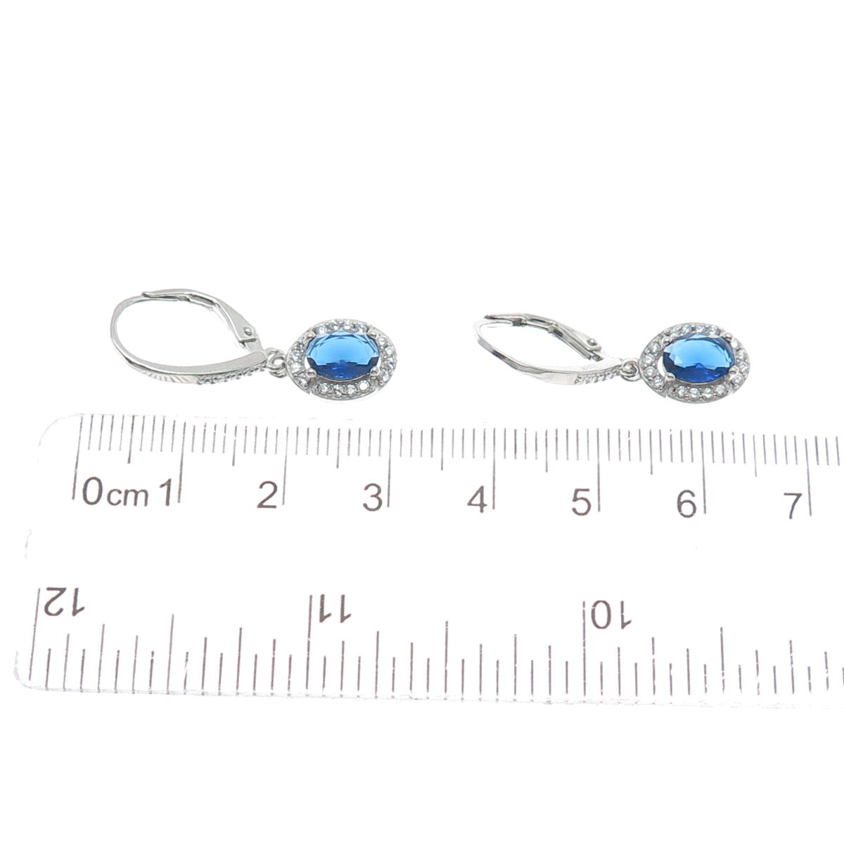 925 Sterling Silver Blue Oval-Cut & White Round-Cut Shaped C Z Dangle Earrings