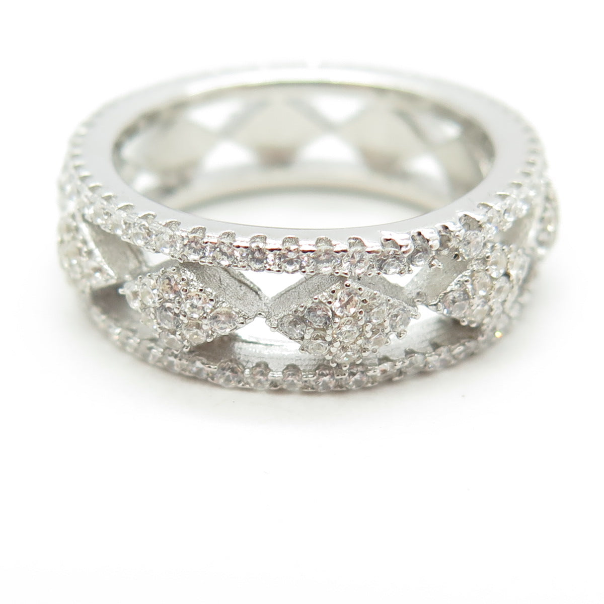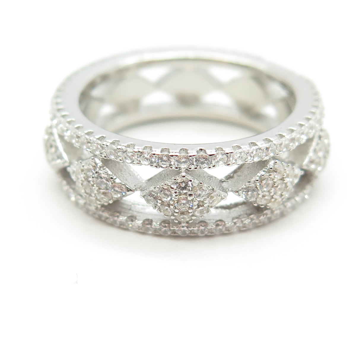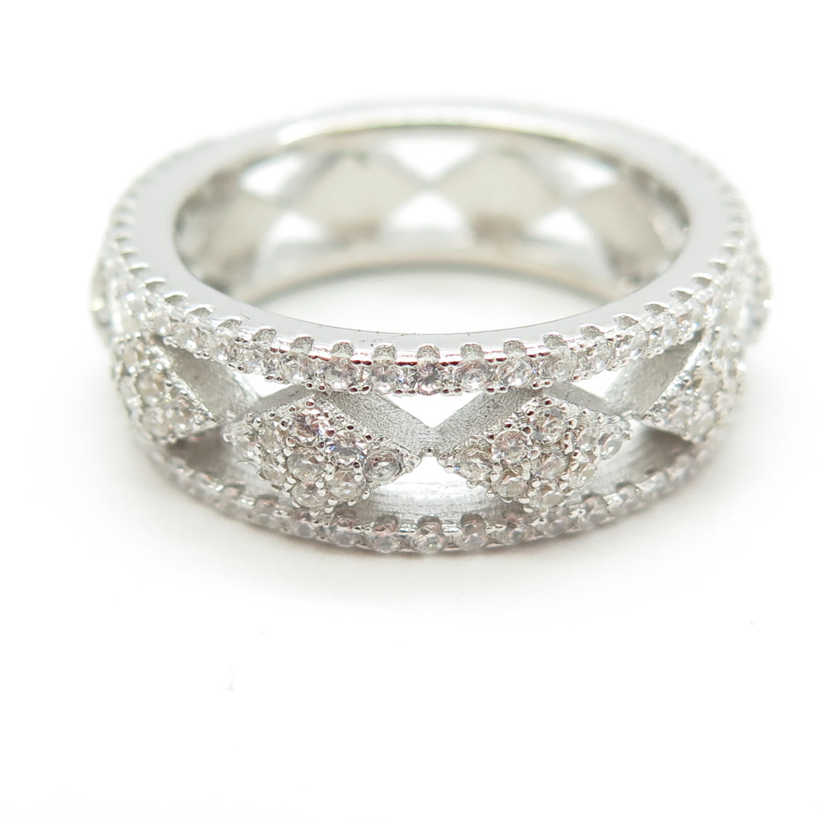 925 Sterling Silver C Z All Around Eternity Band Ring Size 8