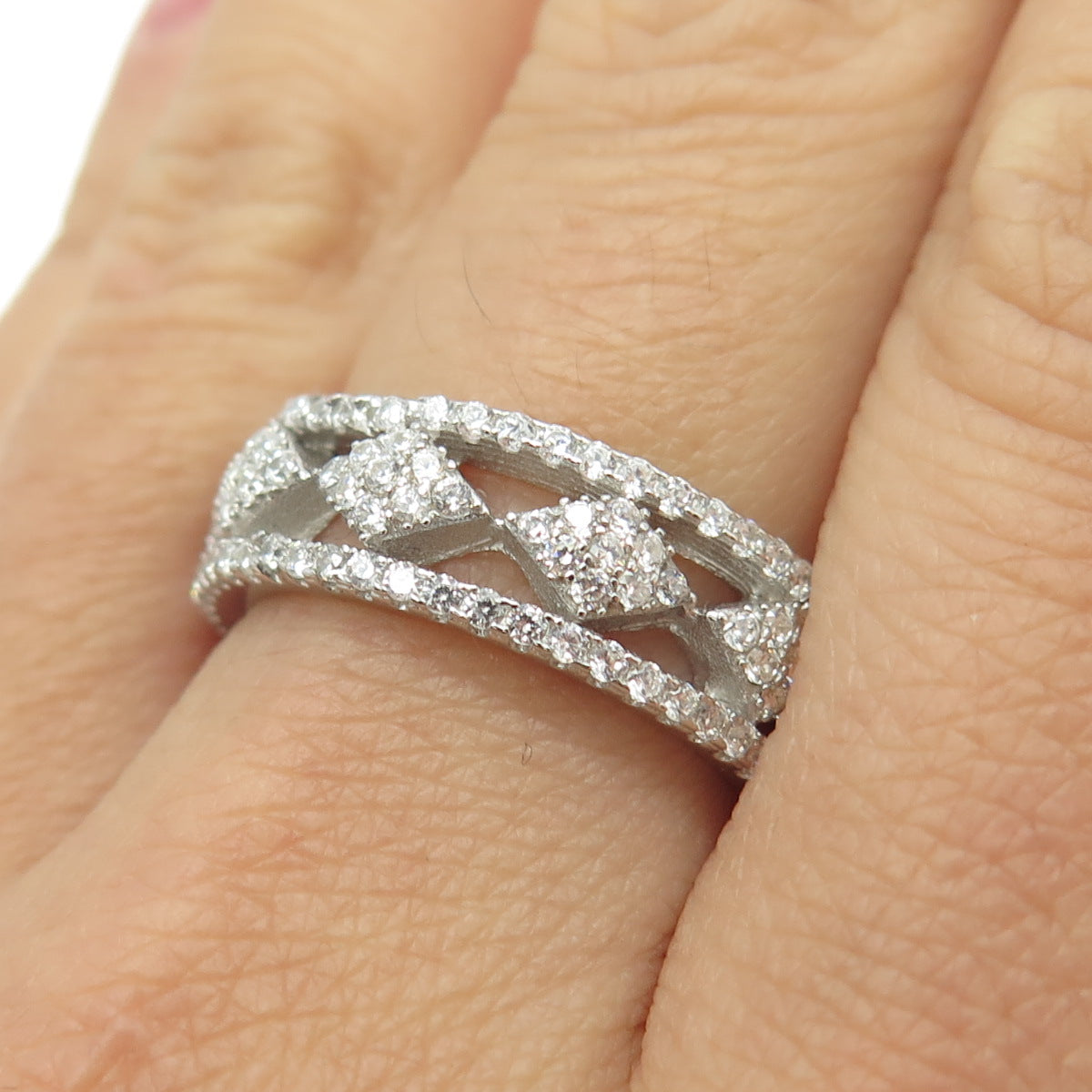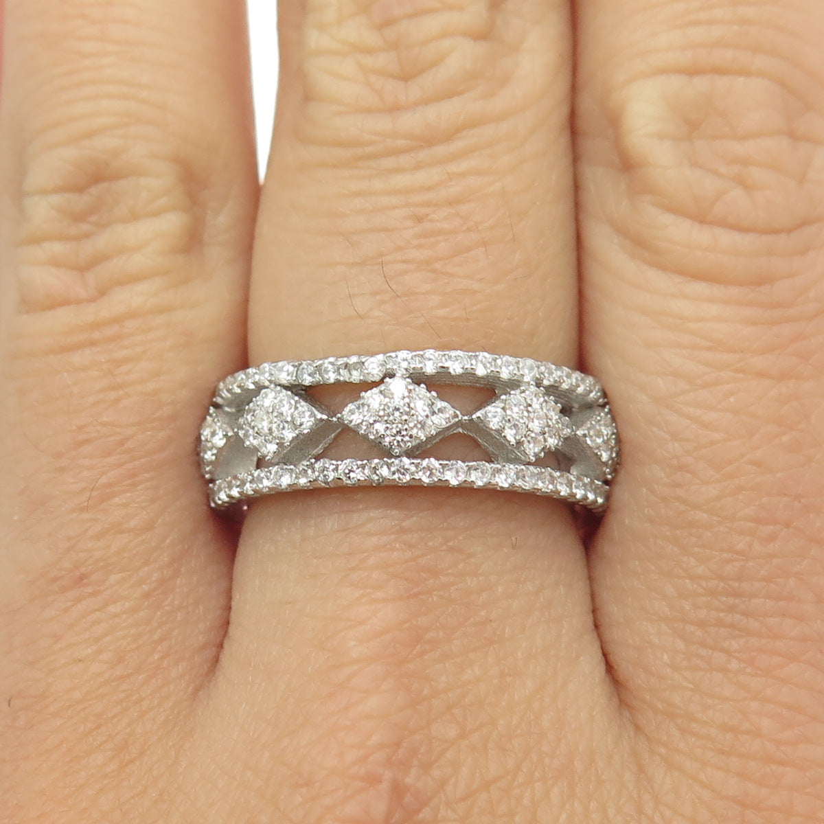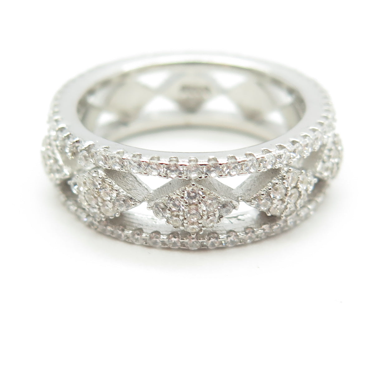 925 Sterling Silver C Z All Around Eternity Band Ring Size 8