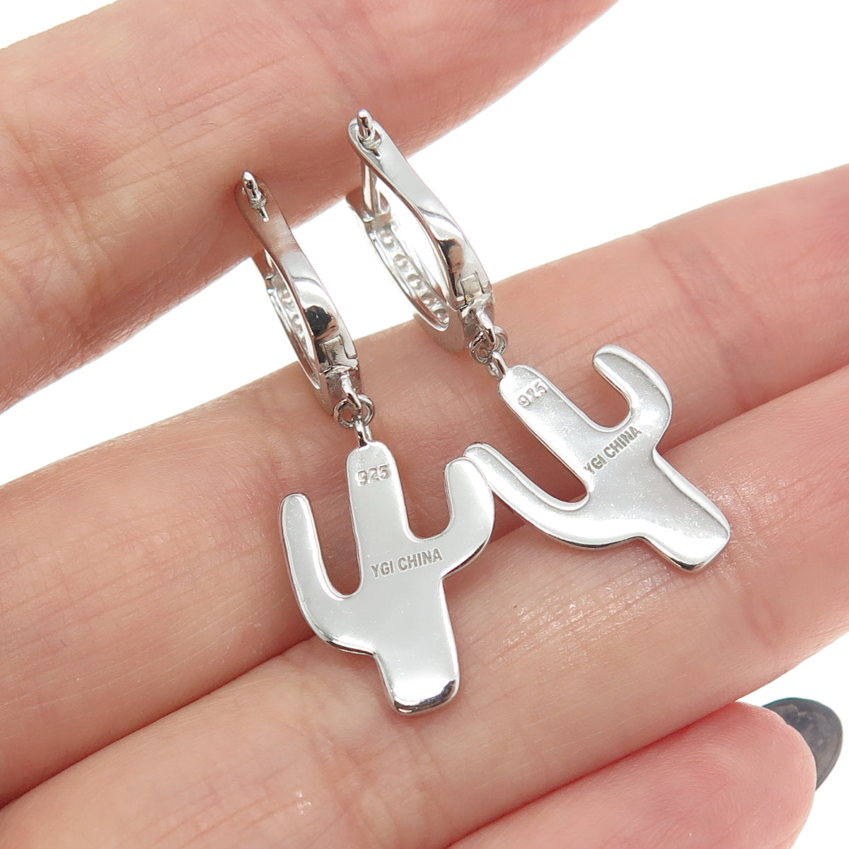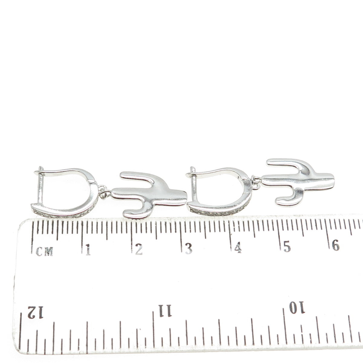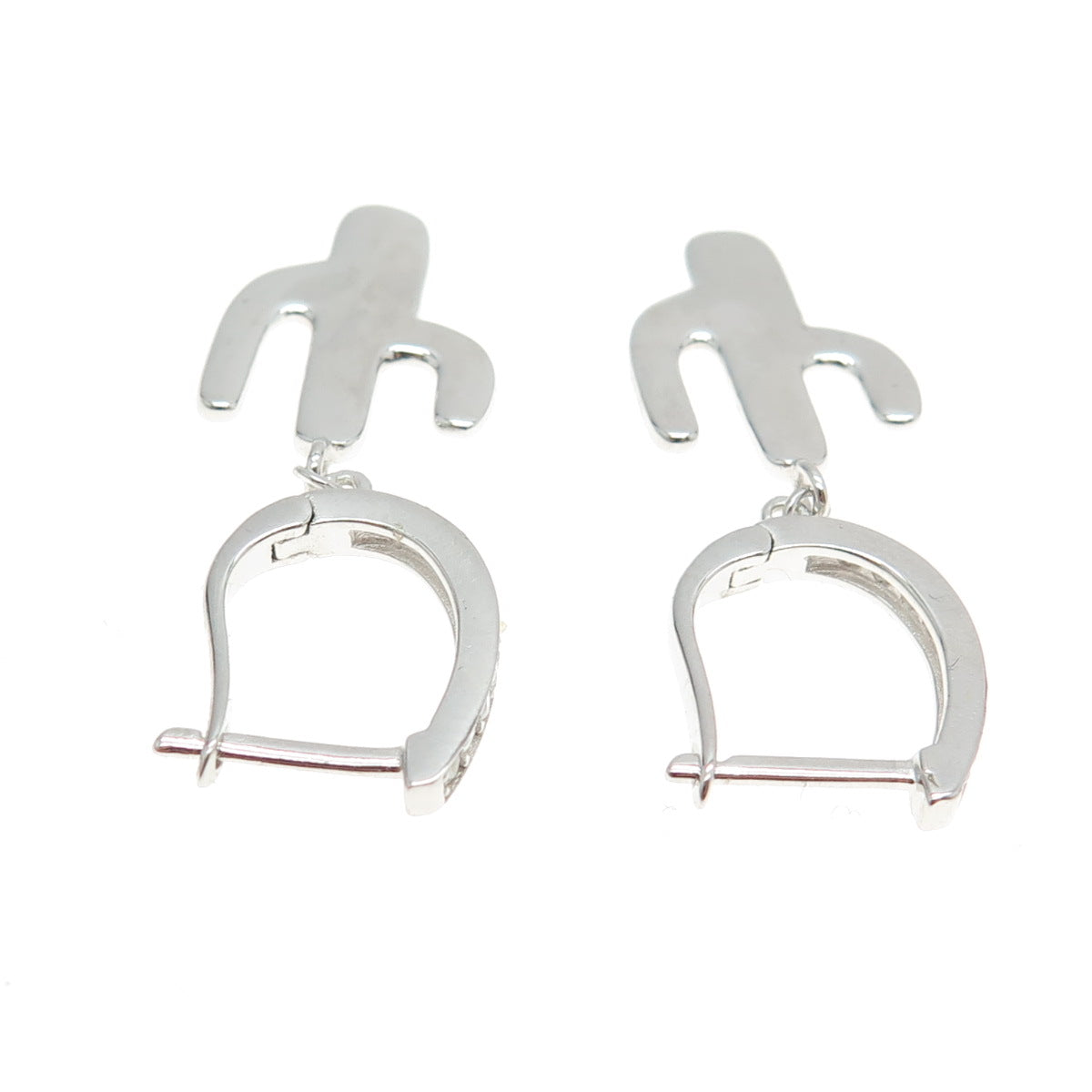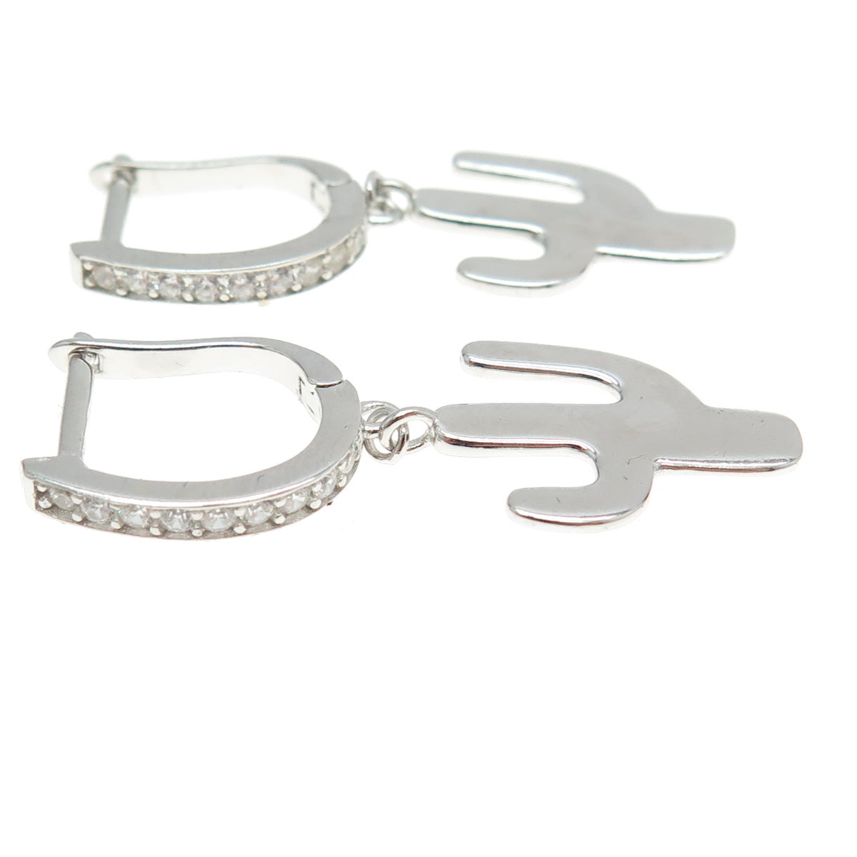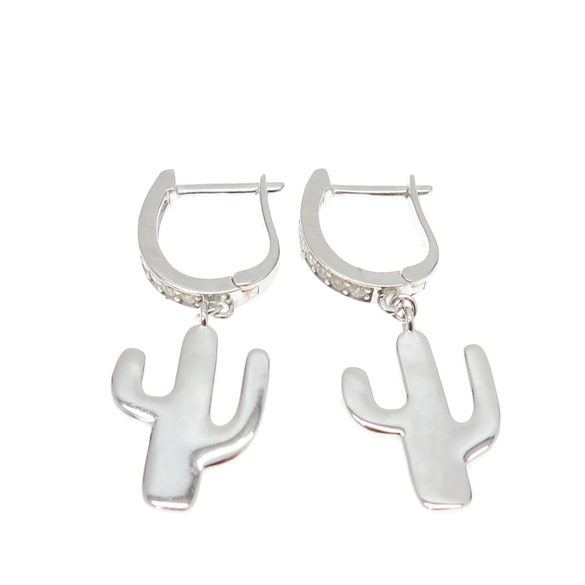 925 Sterling Silver C Z Cactus Dangling Earrings