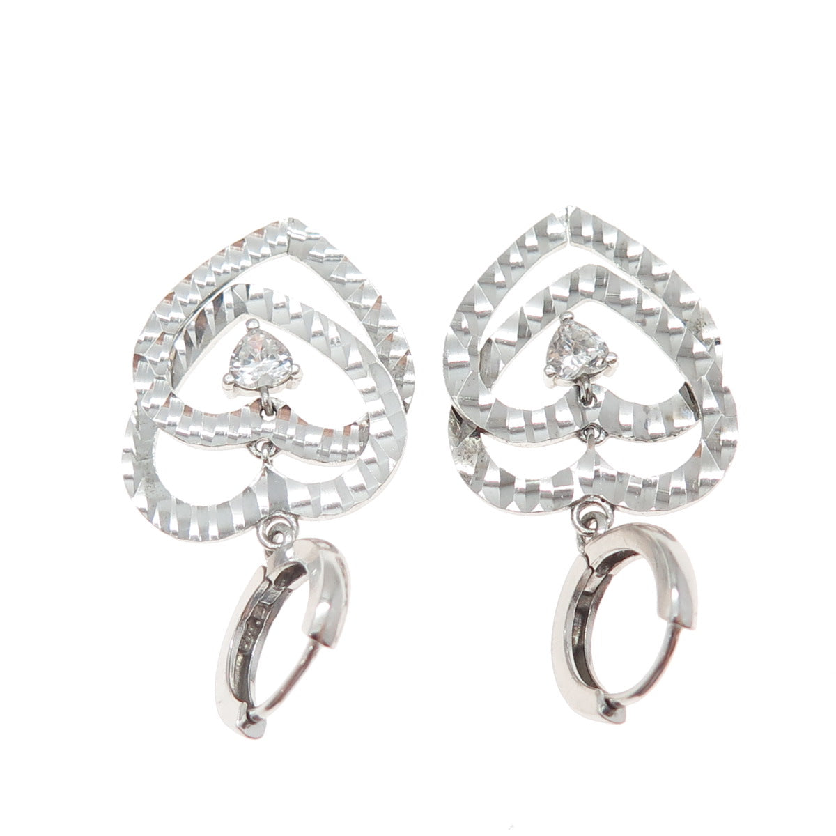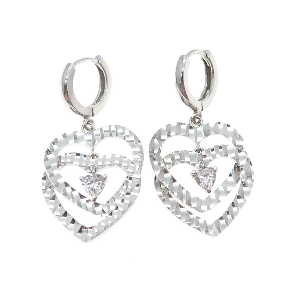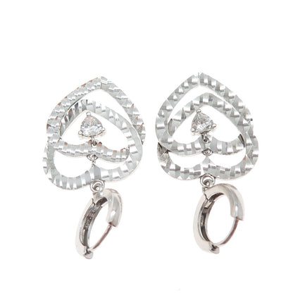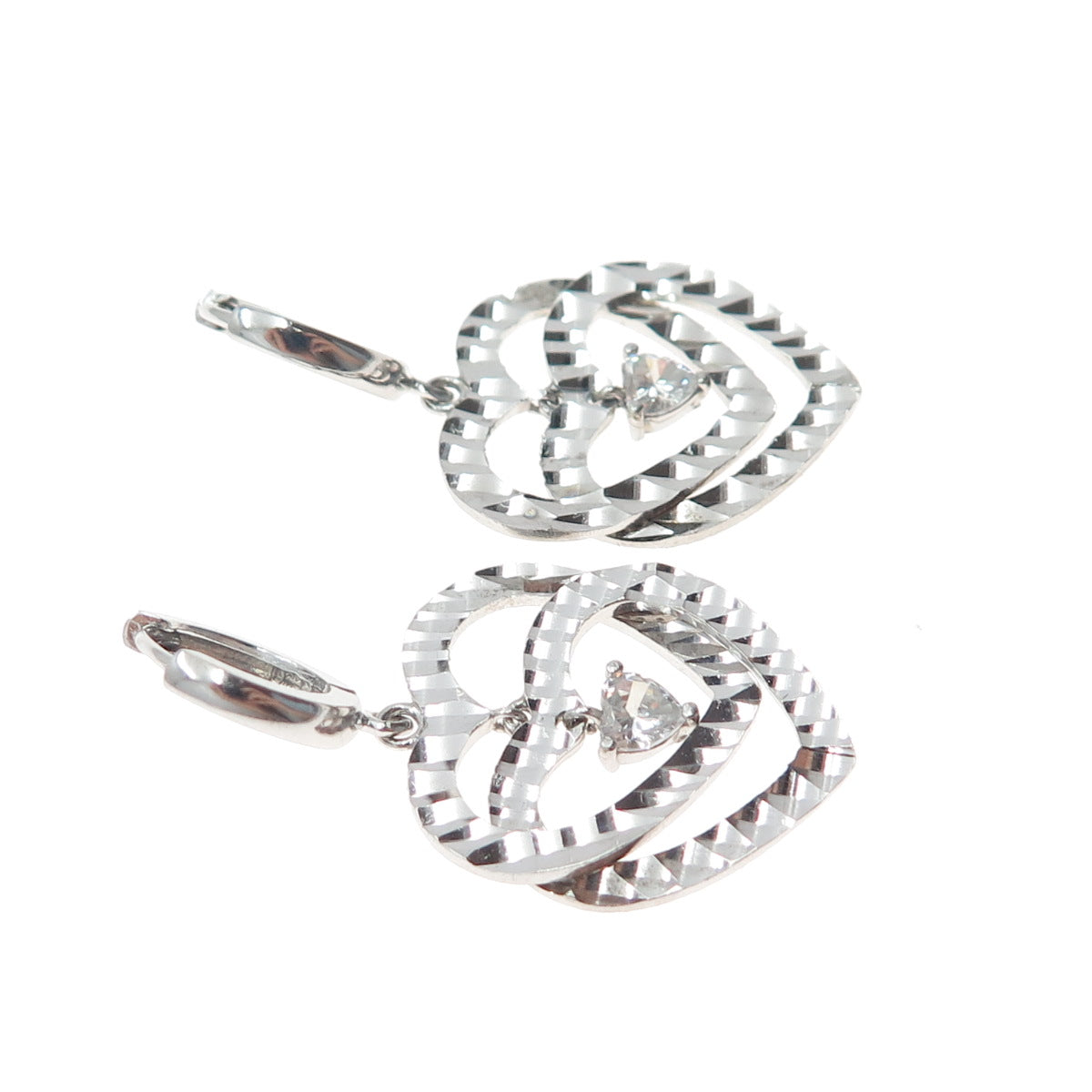 925 Sterling Silver C Z Interlocked Heart Dangle Earrings