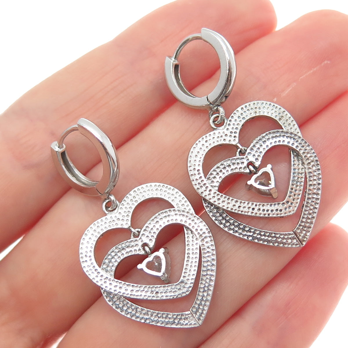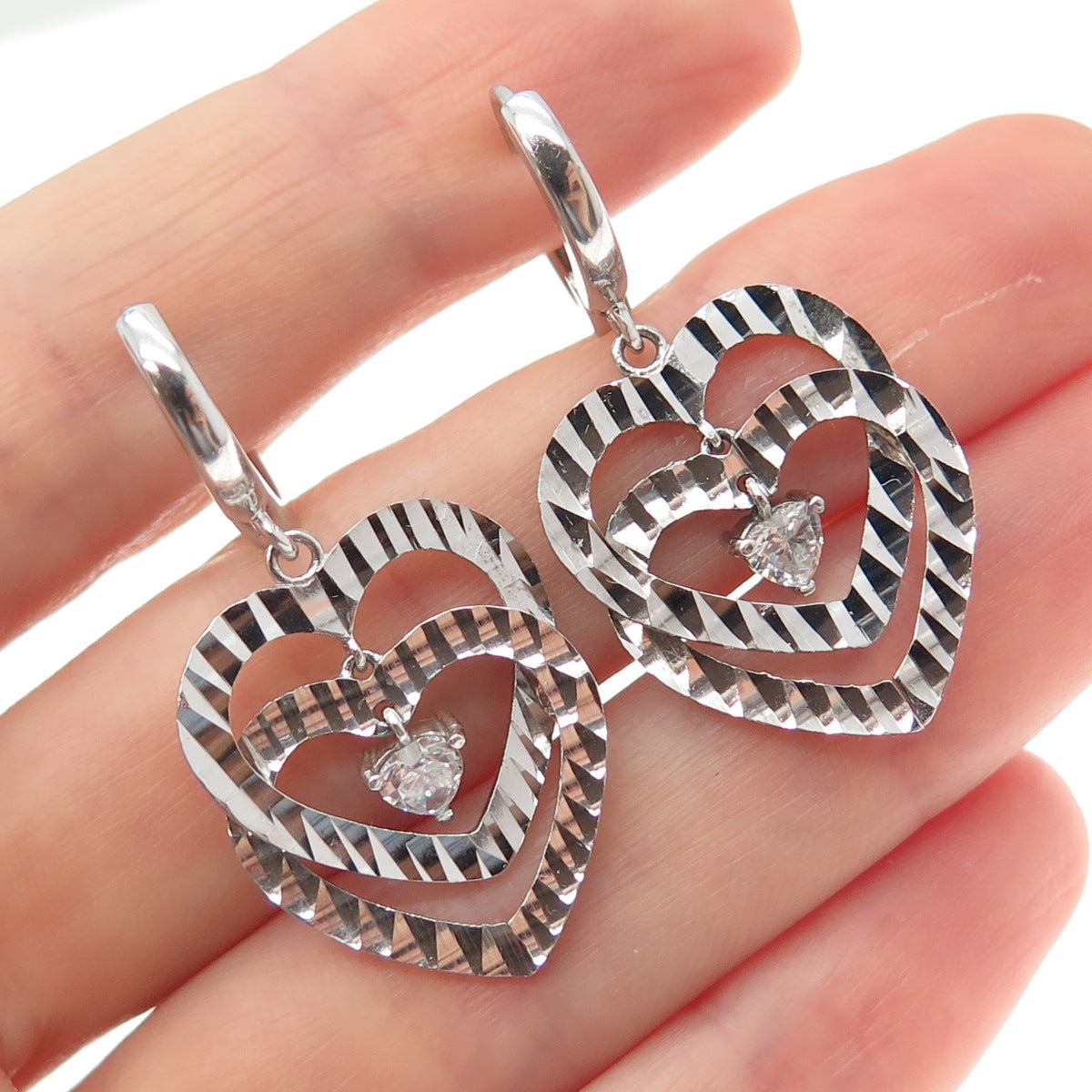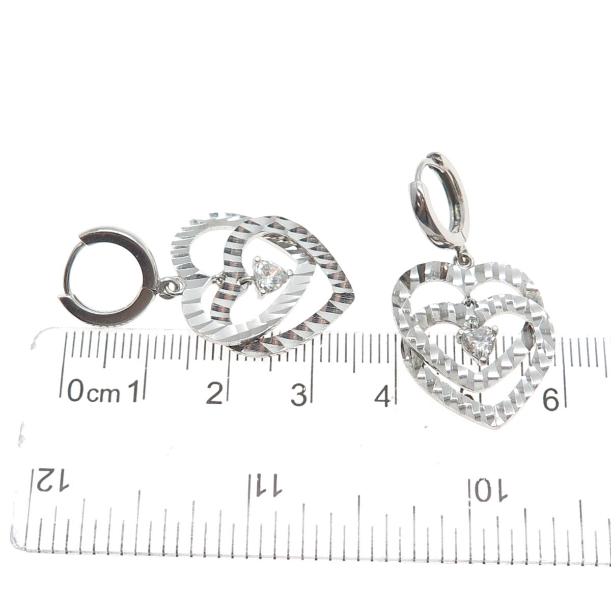 925 Sterling Silver C Z Interlocked Heart Dangle Earrings