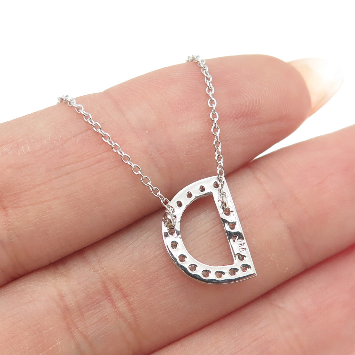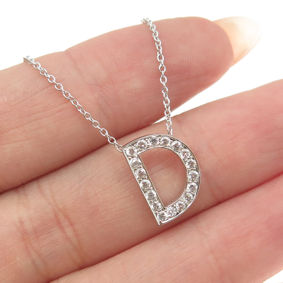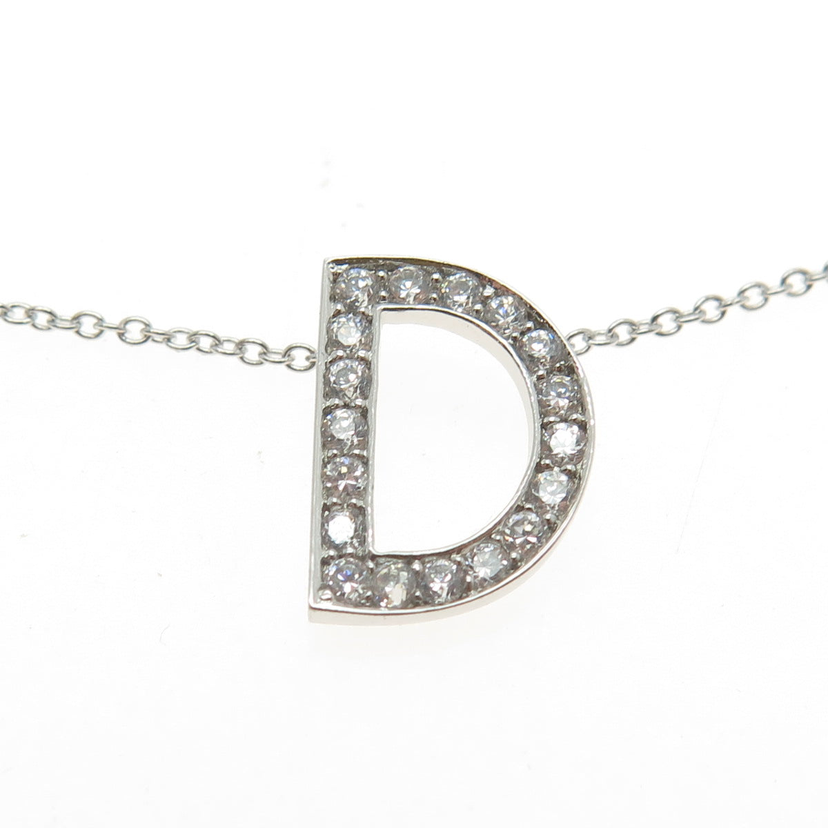 925 Sterling Silver C Z Letter "D" Initial Rolo Chain Necklace 18-20"