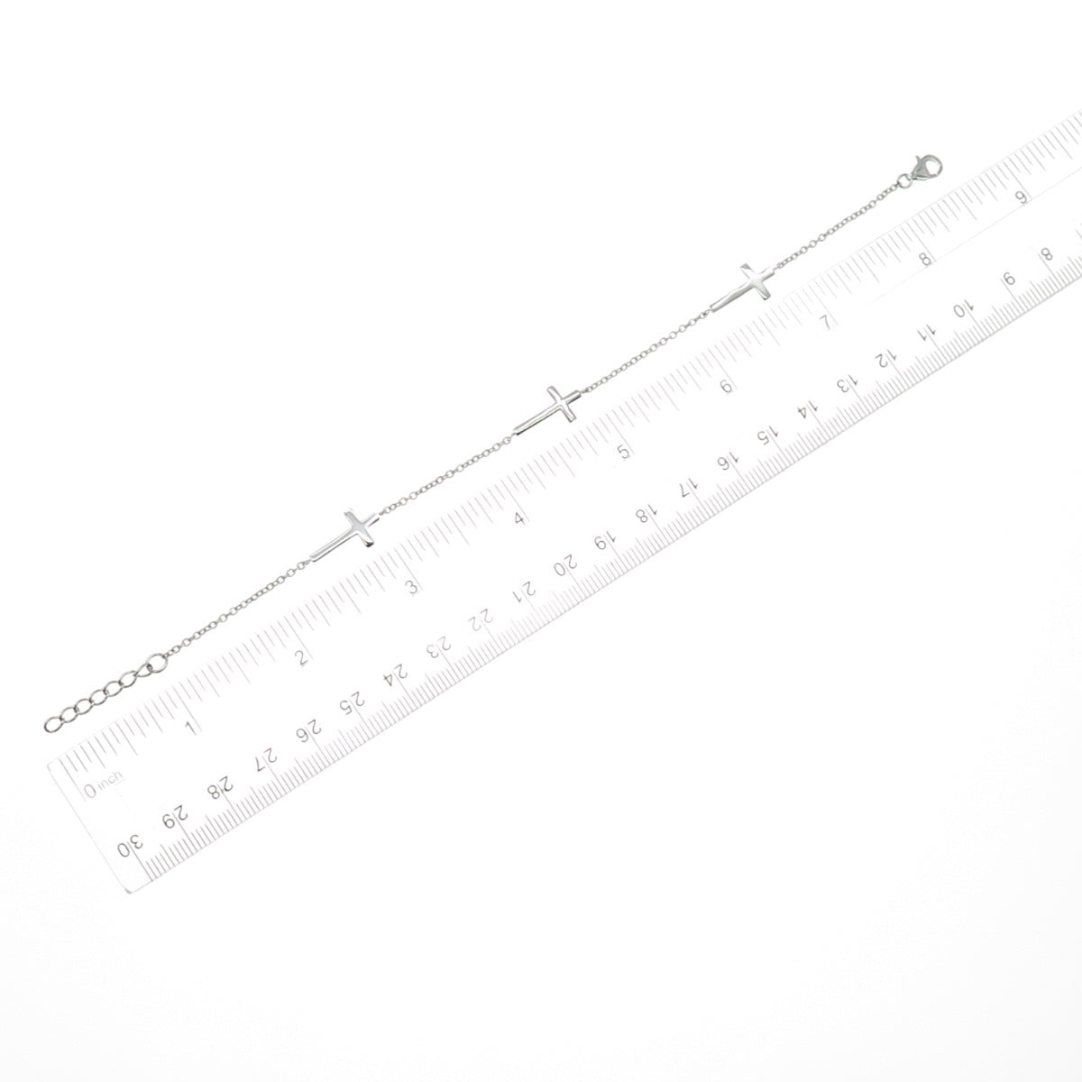925 Sterling Silver Cross Station Cable Link Bracelet 7.25-8.25"
