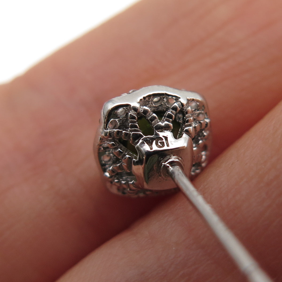 925 Sterling Silver Cushion-Cut Green & Round-Cut White C Z Stud Earrings