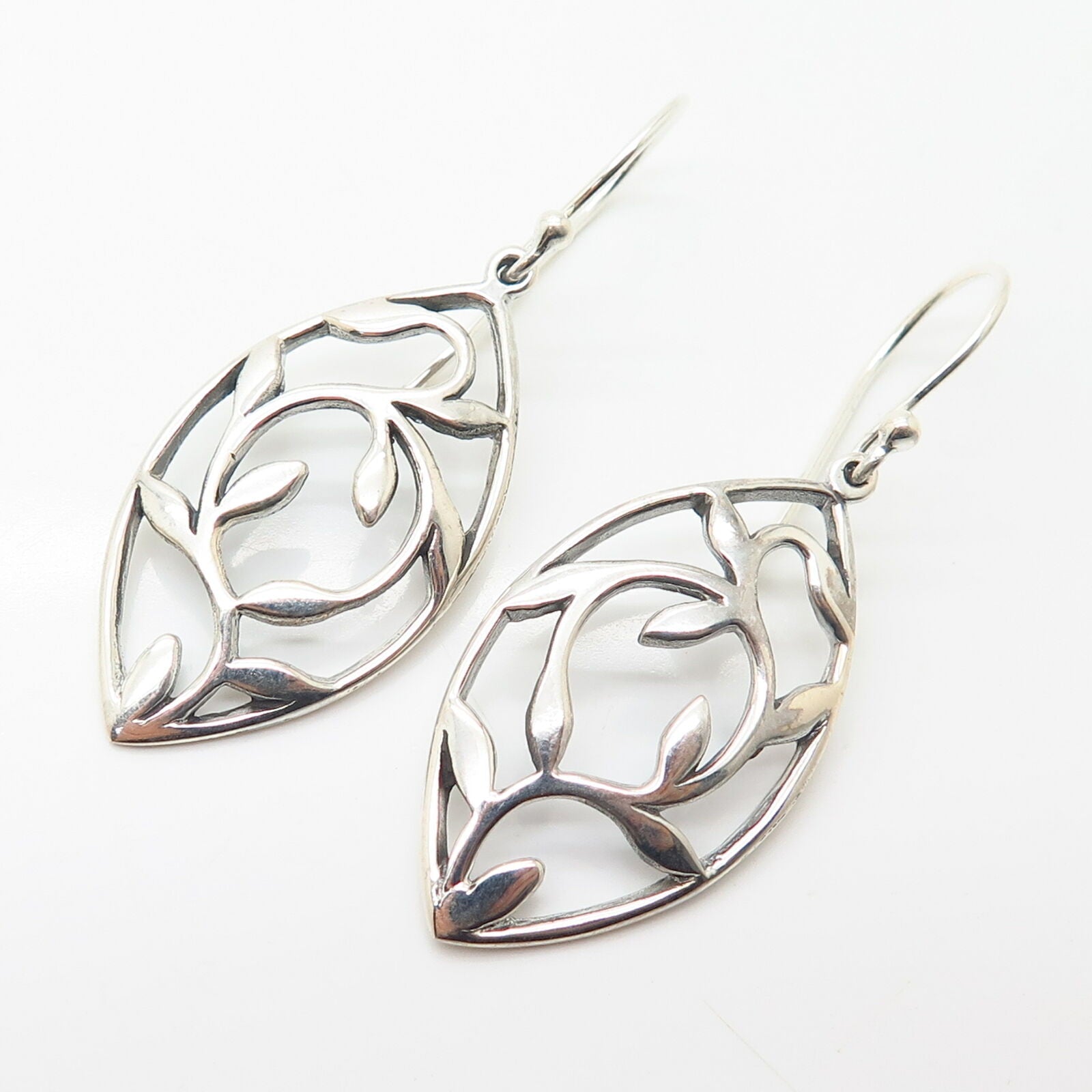925 Sterling Silver Dangling Leaf / Branch Design Earrings