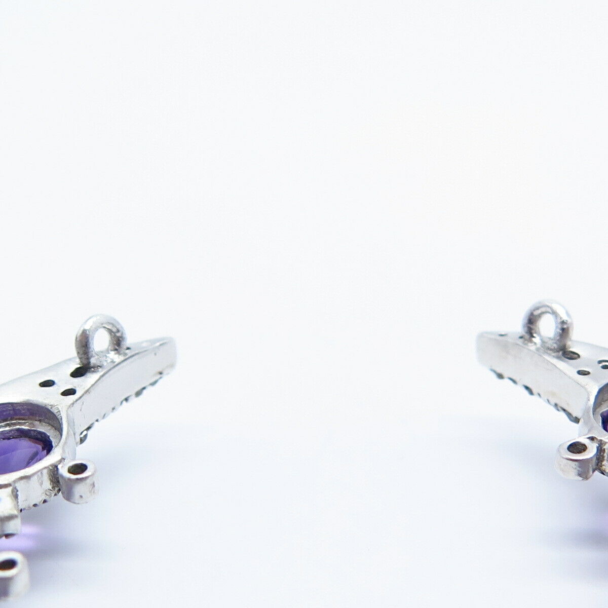 925 Sterling Silver Diamond & Amethyst Gem Hammered Finish Necklace Central Part