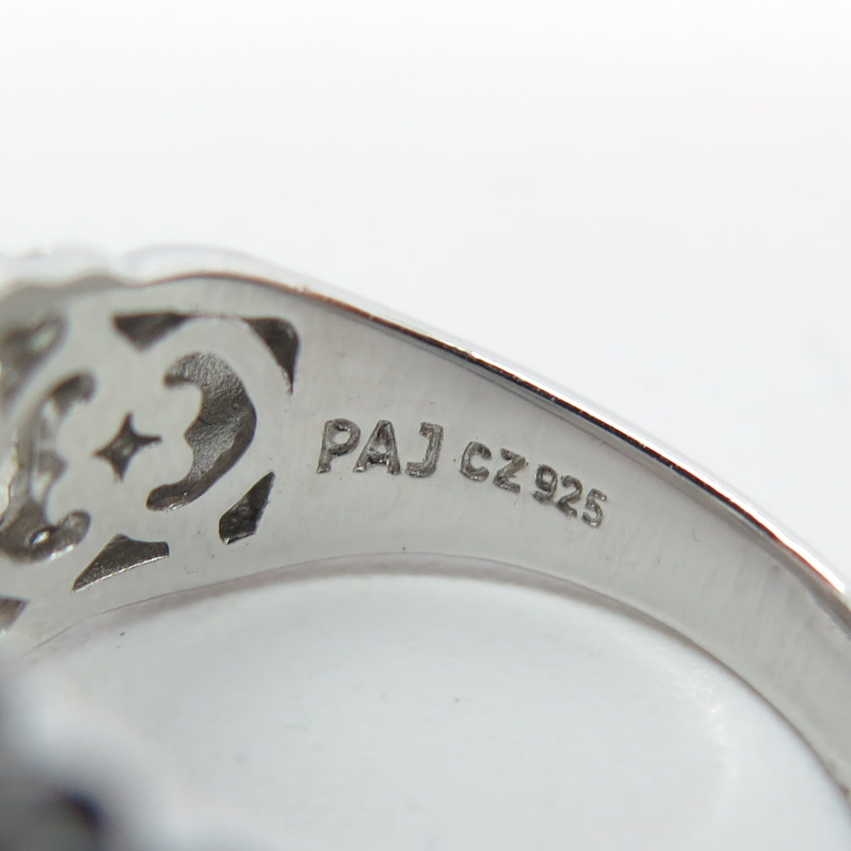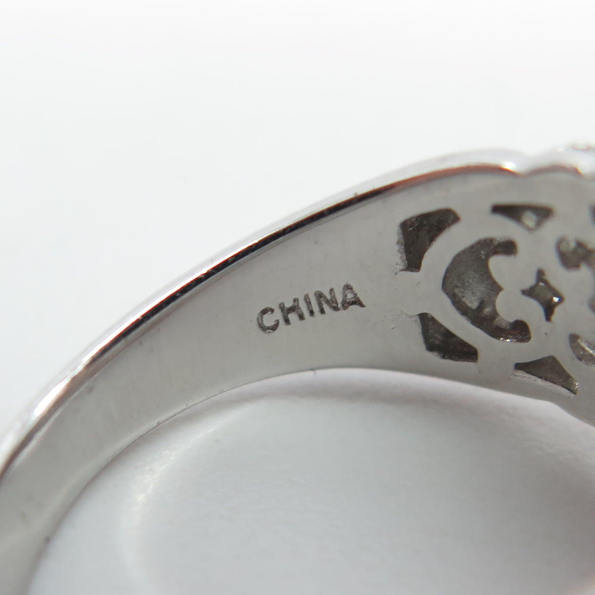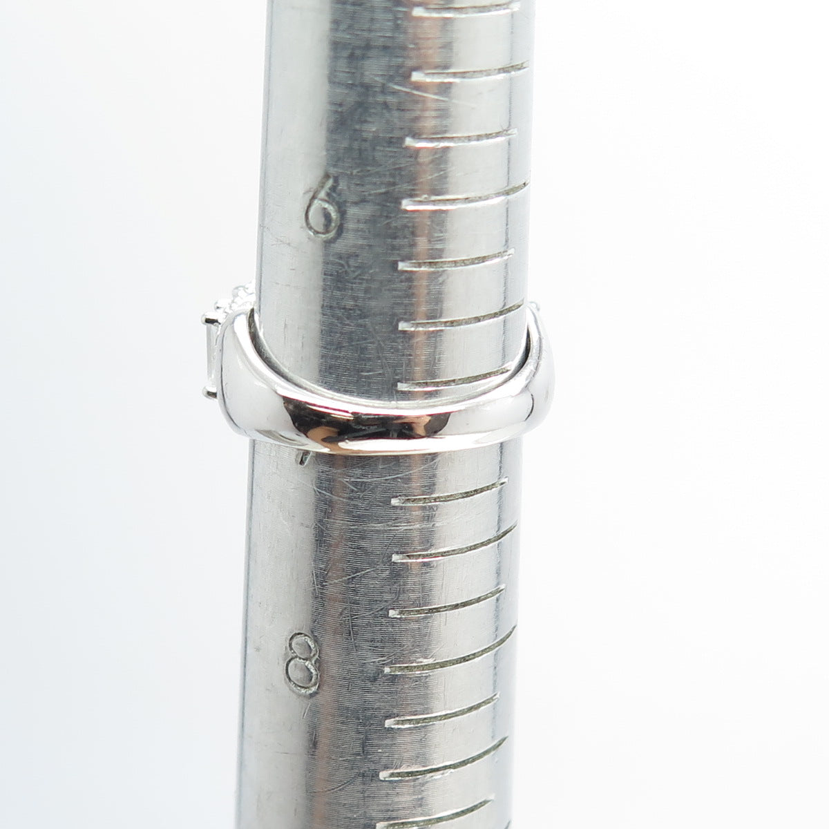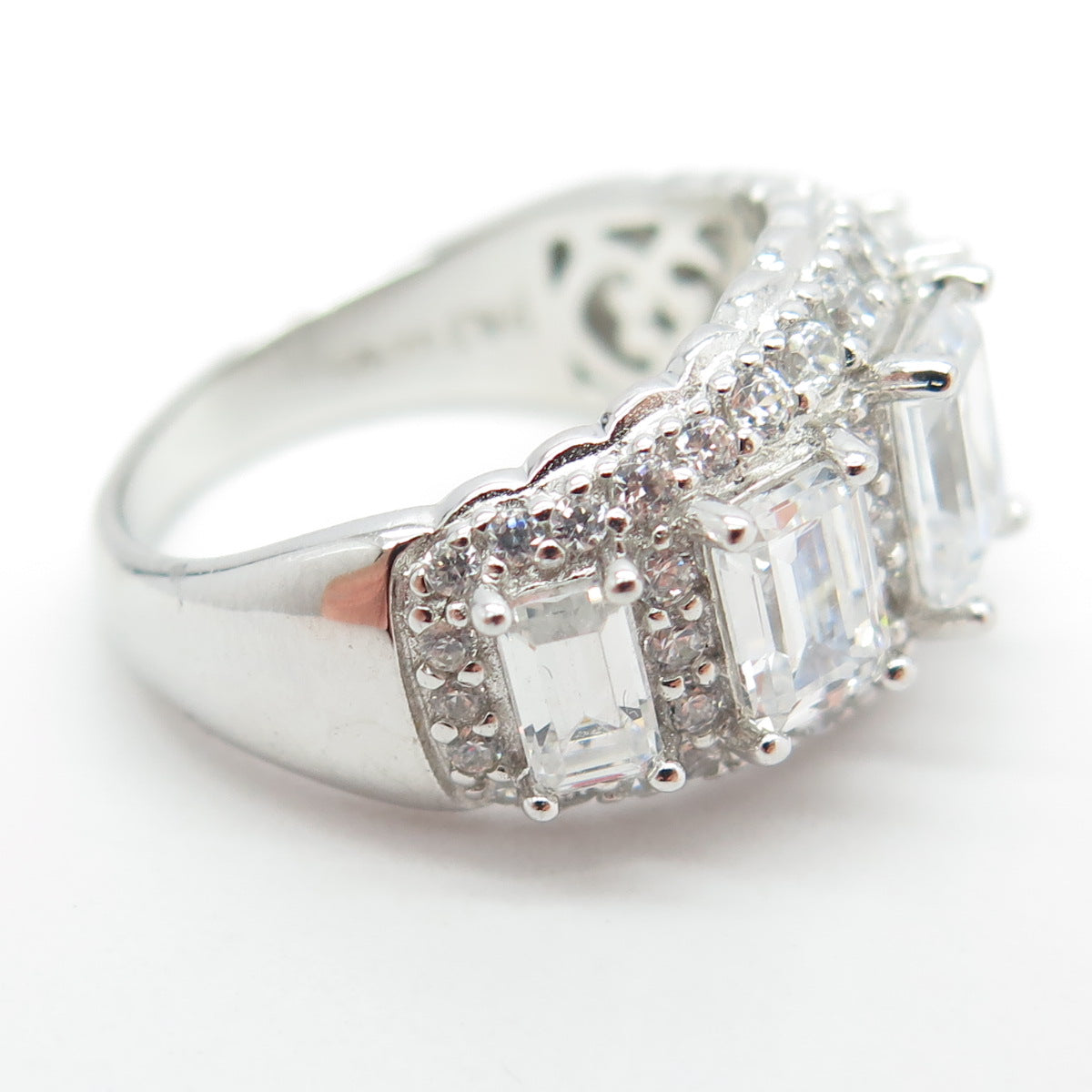 925 Sterling Silver Emerald & Round-Cut C Z Engagement Ring Size 7