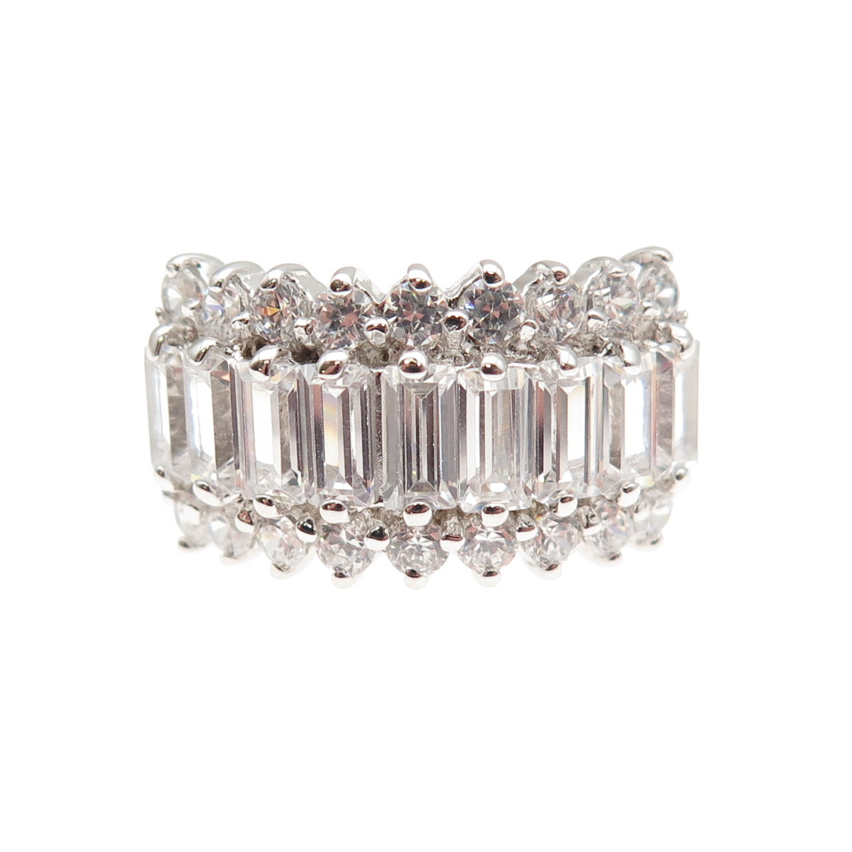 925 Sterling Silver Emerald & Round-Cut C Z Promise Ring Size 7