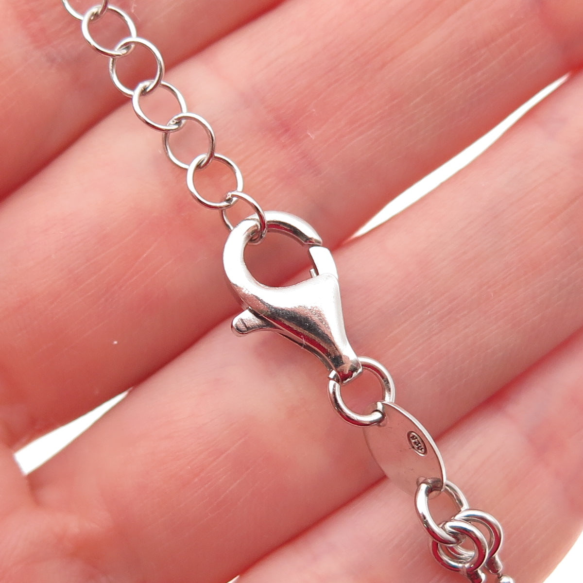 925 Sterling Silver Enamel Ball Beaded Double Chain Necklace 16-18"