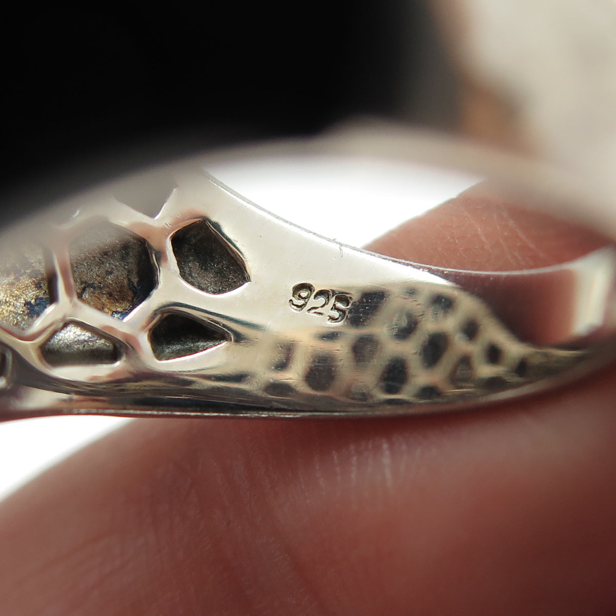 925 Sterling Silver Enamel Real Black Onyx & White Topaz Ring Size 7.25
