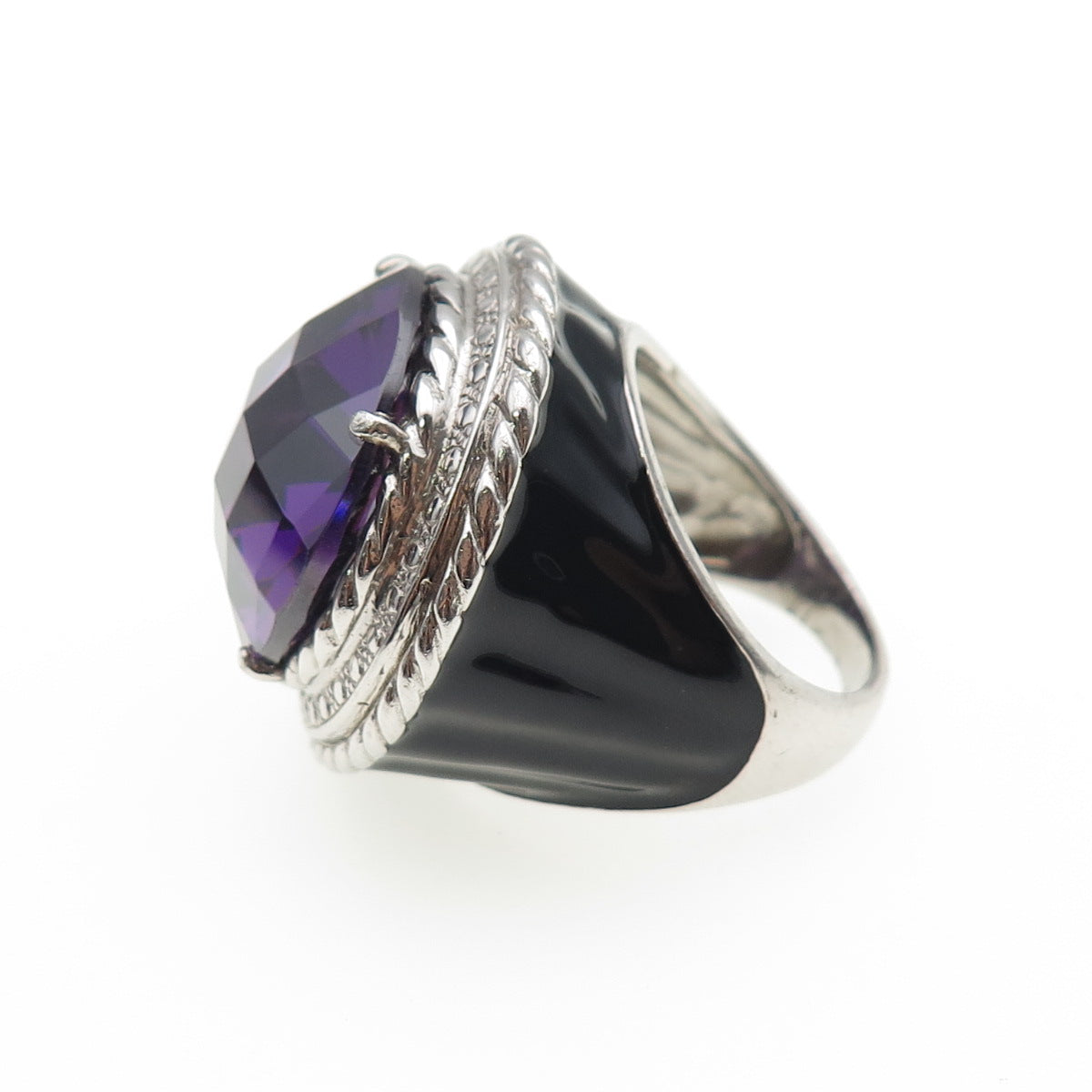 925 Sterling Silver Enamel Round-Cut Purple C Z Statement Ring Size 7.25