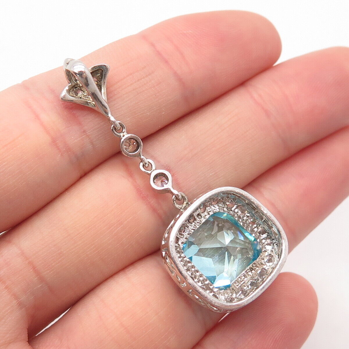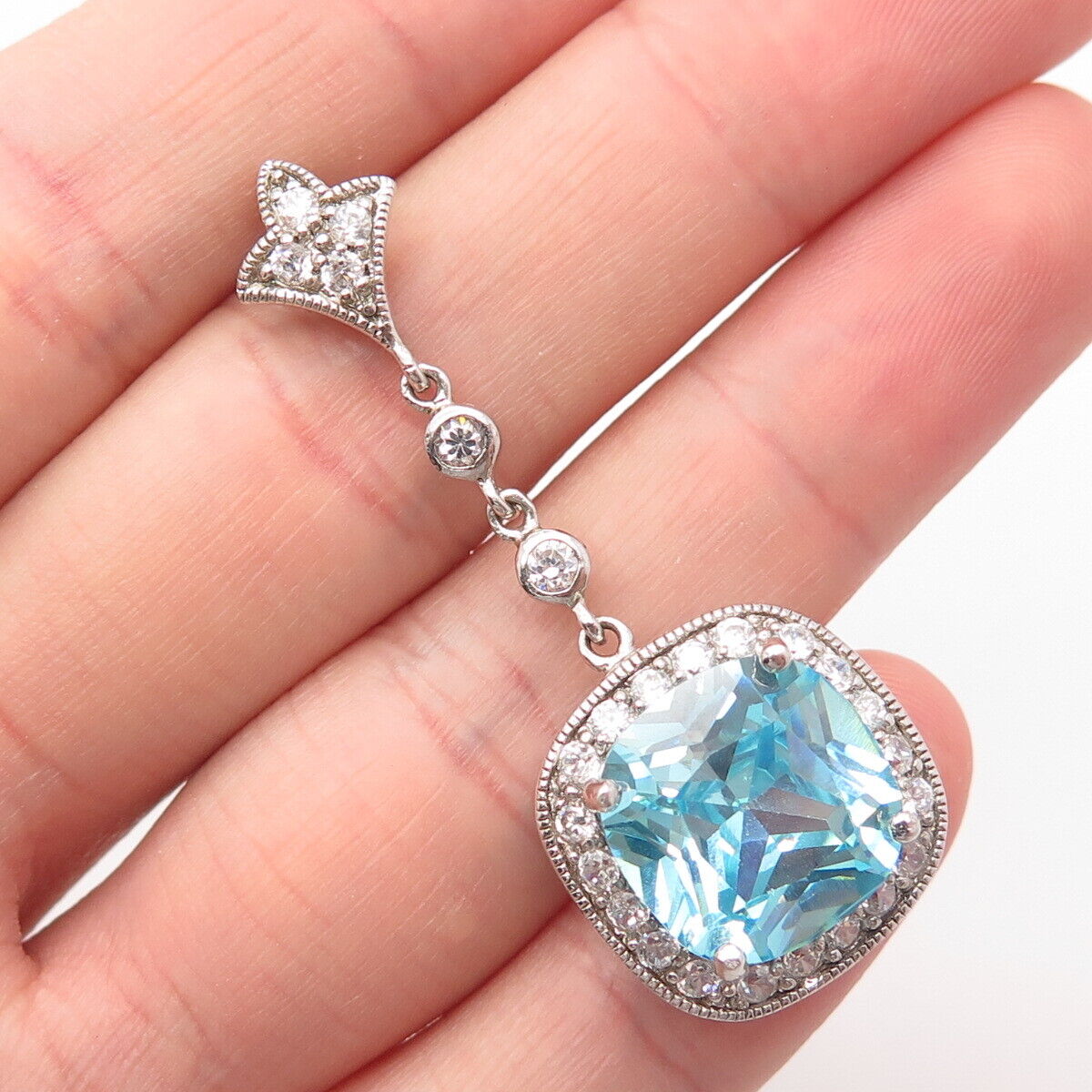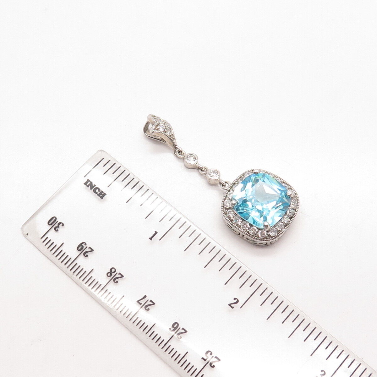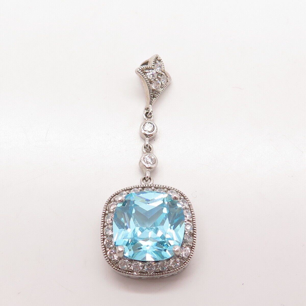 925 Sterling Silver FAS Apatite & C Z Cushion Shape Dangling Pendant