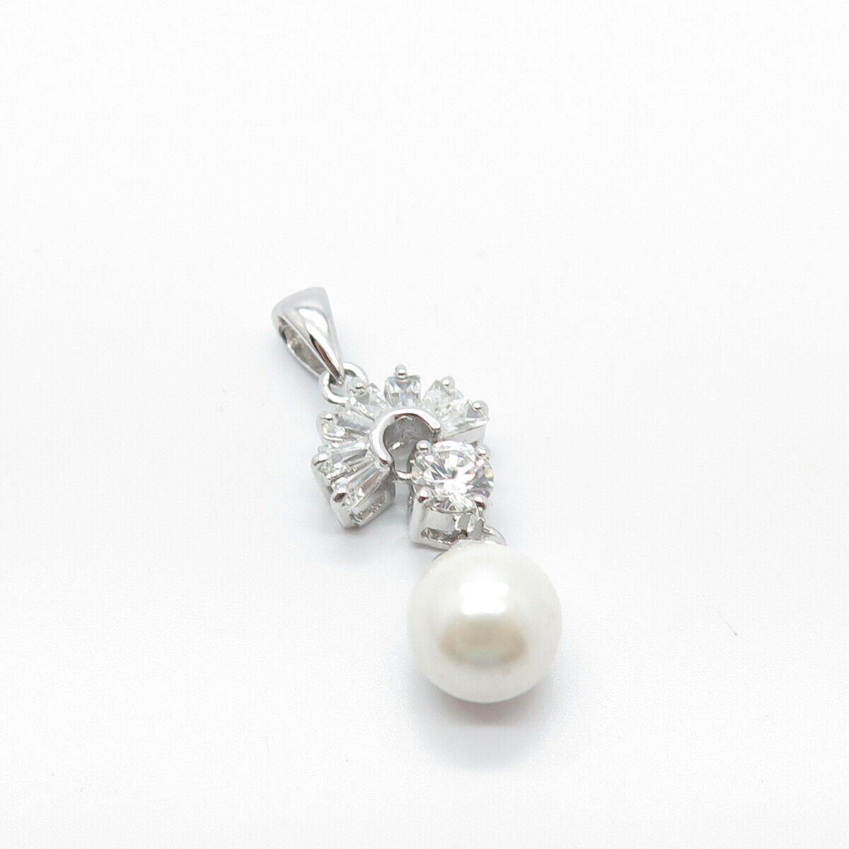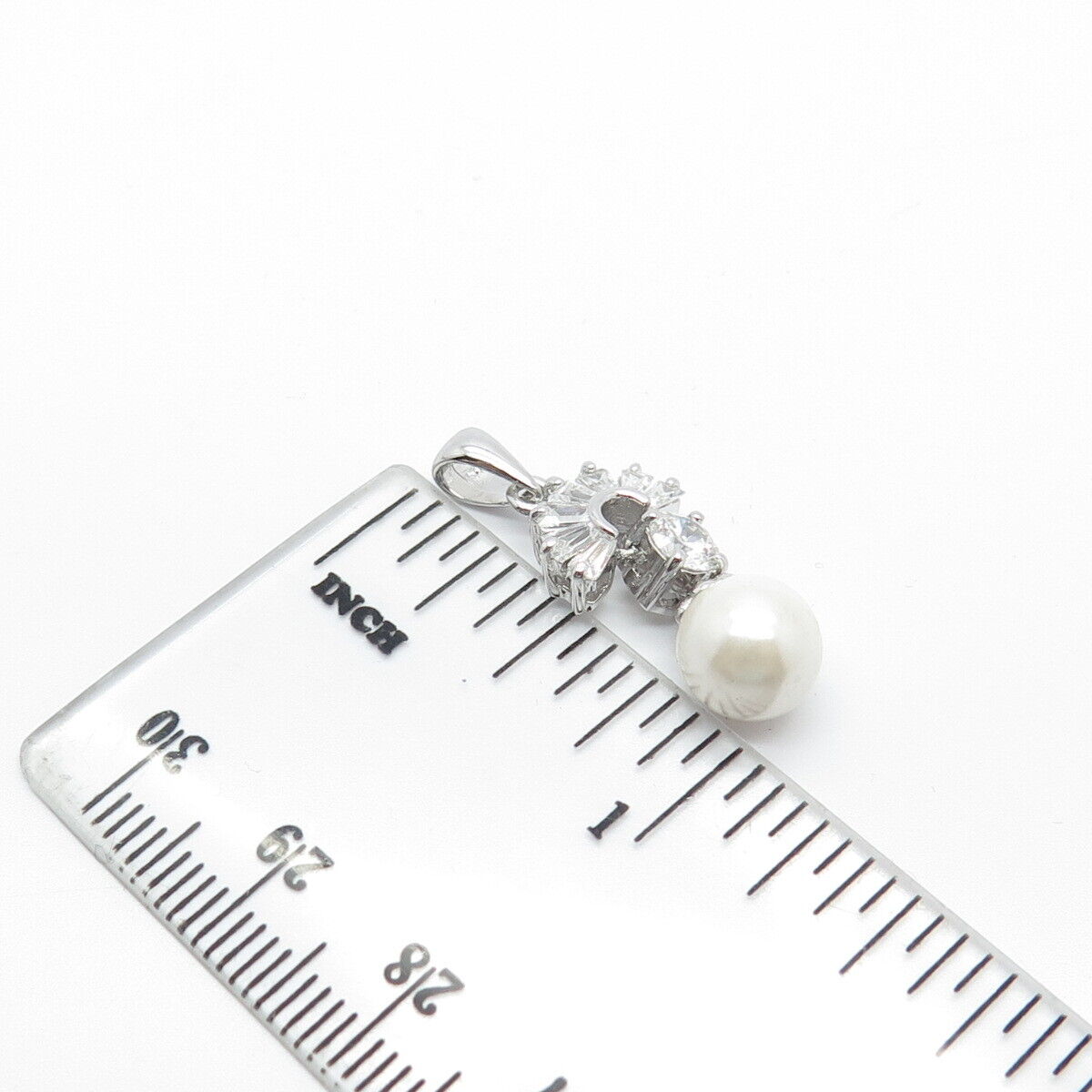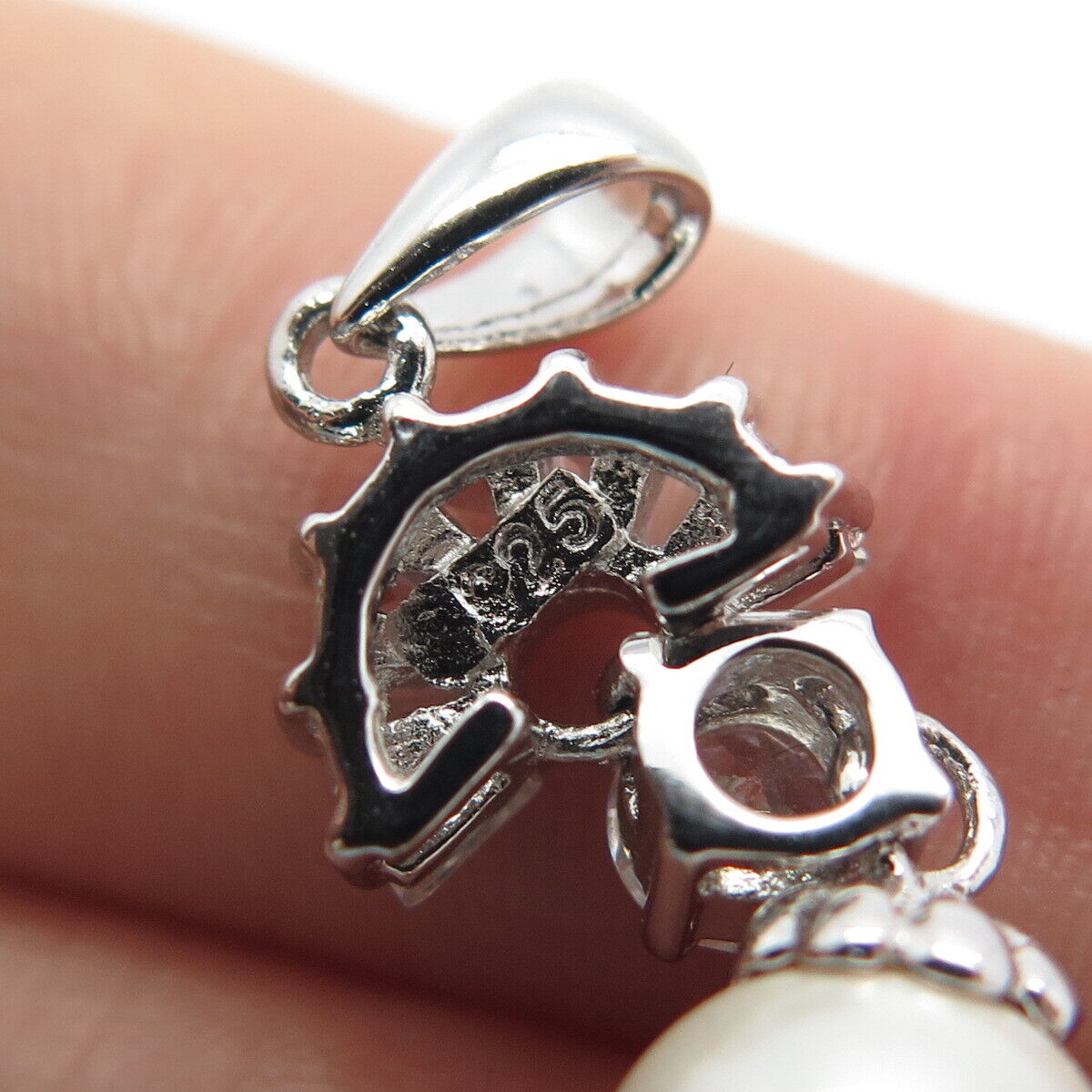 925 Sterling Silver Faux Pearl & C Z Ball Dangling Pendant