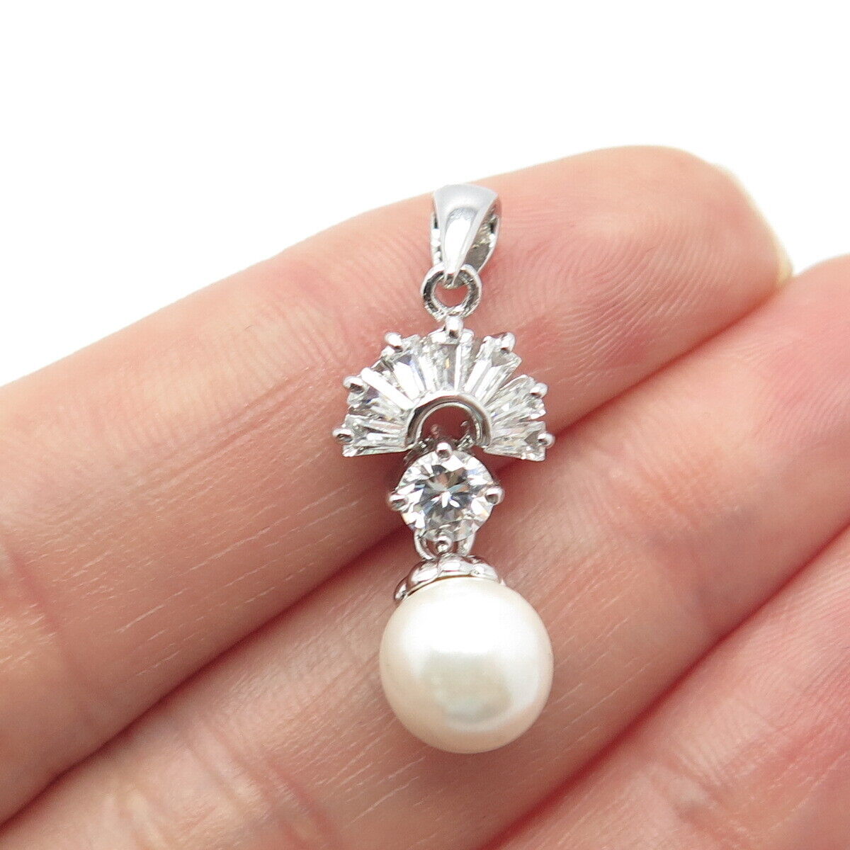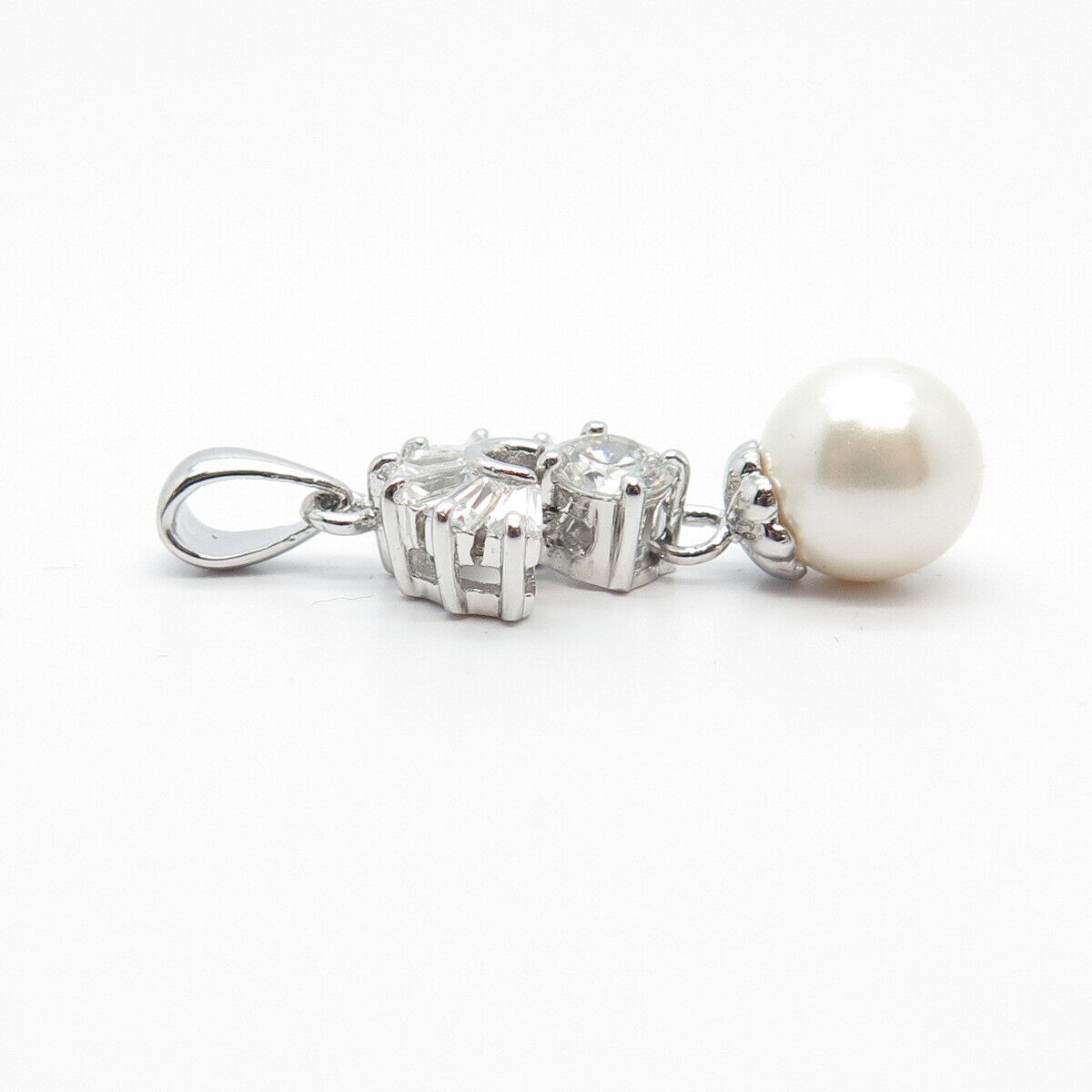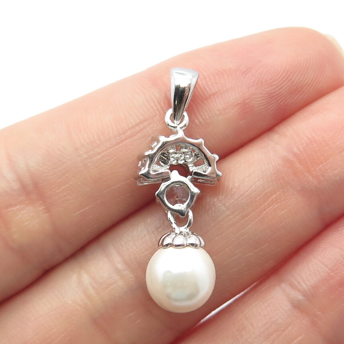 925 Sterling Silver Faux Pearl & C Z Ball Dangling Pendant