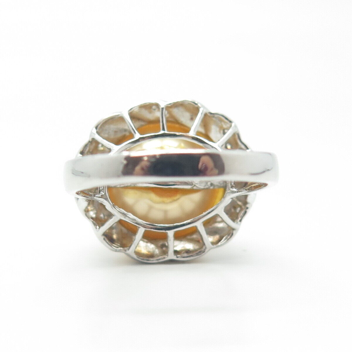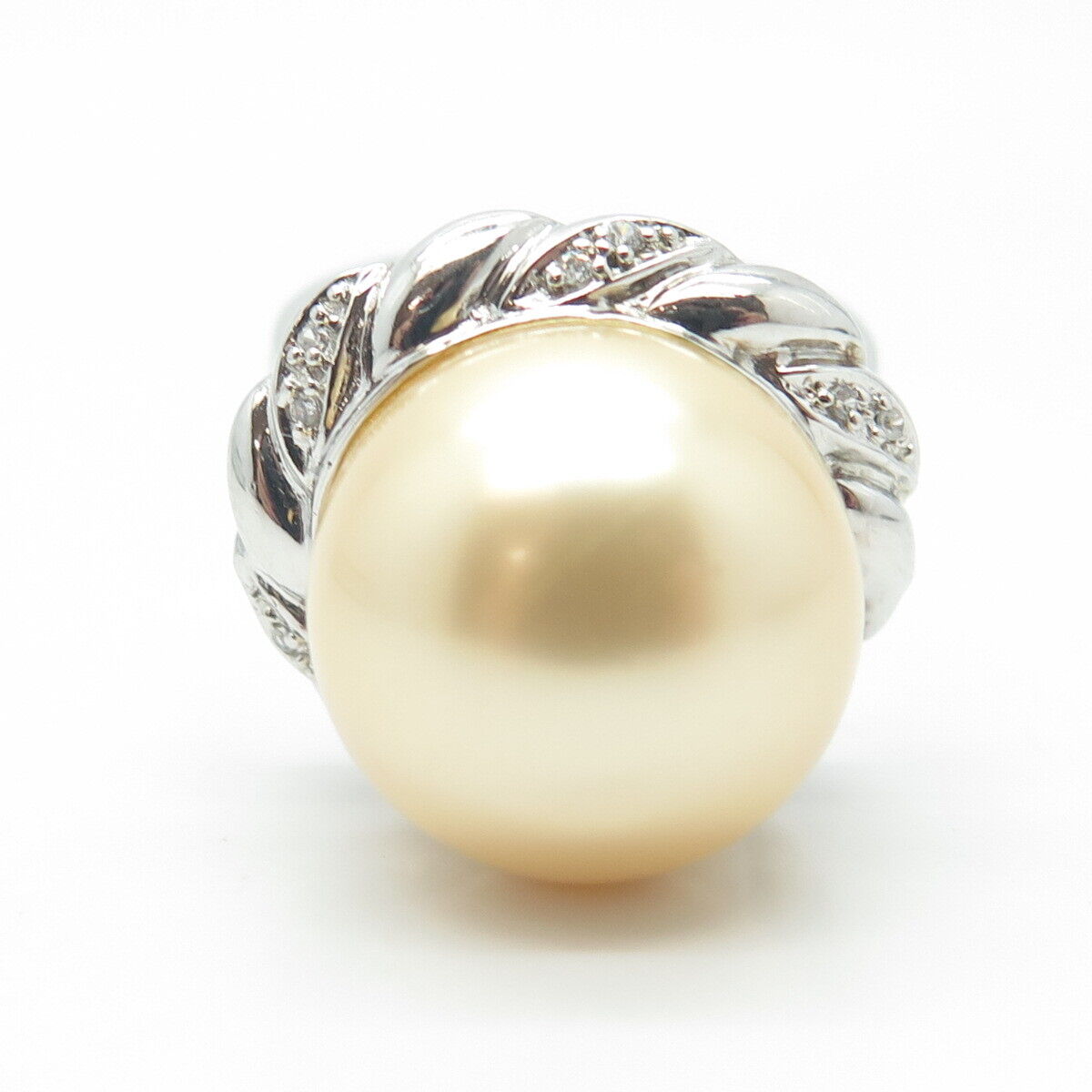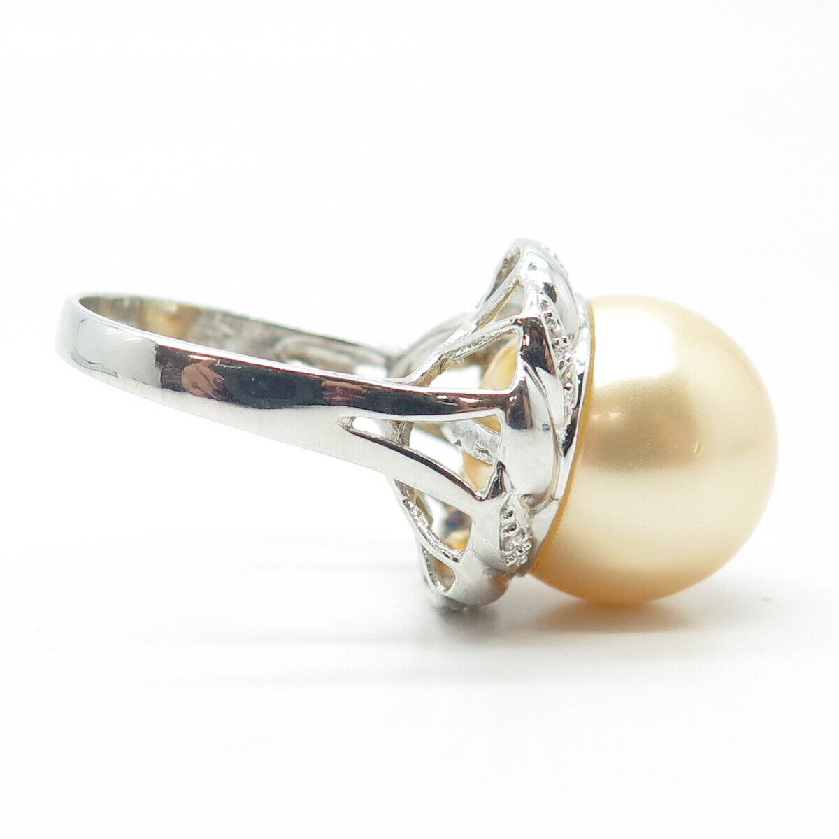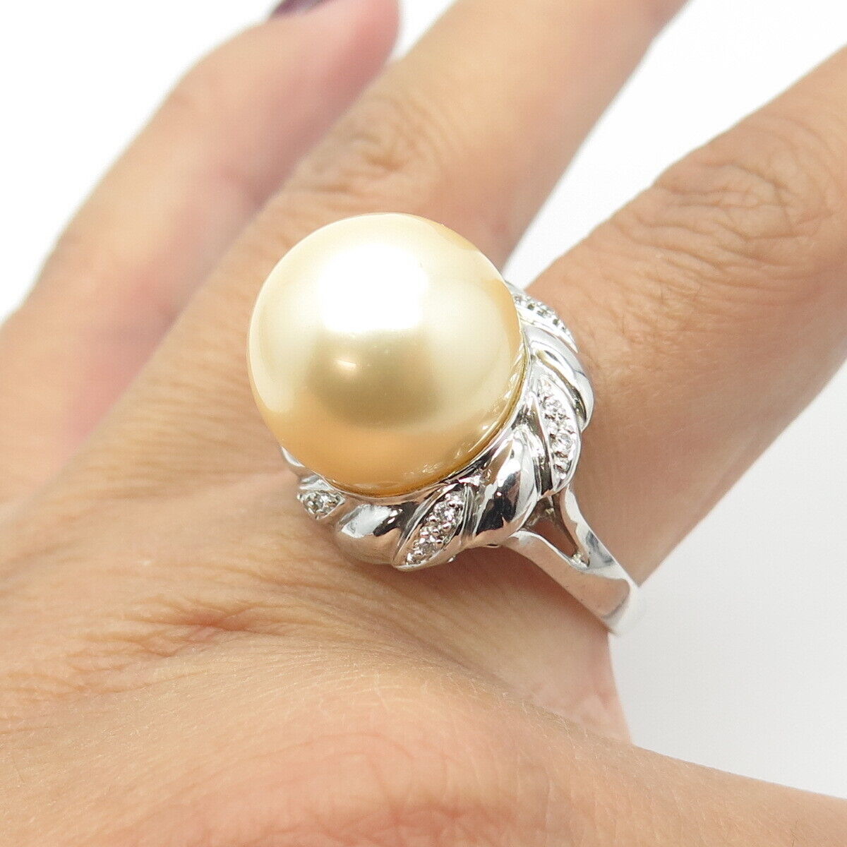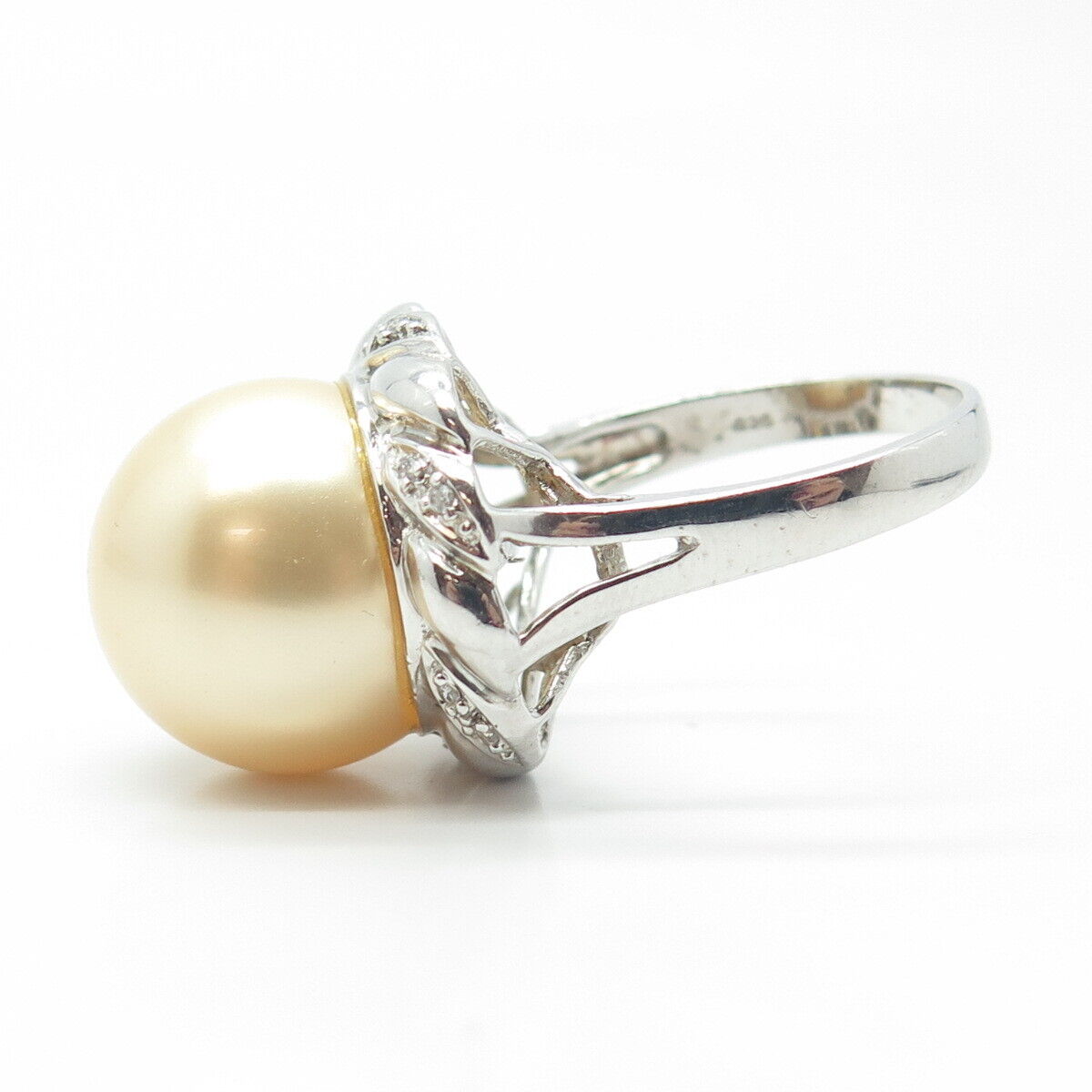925 Sterling Silver Faux Pearl & C Z Ring Size 9.5