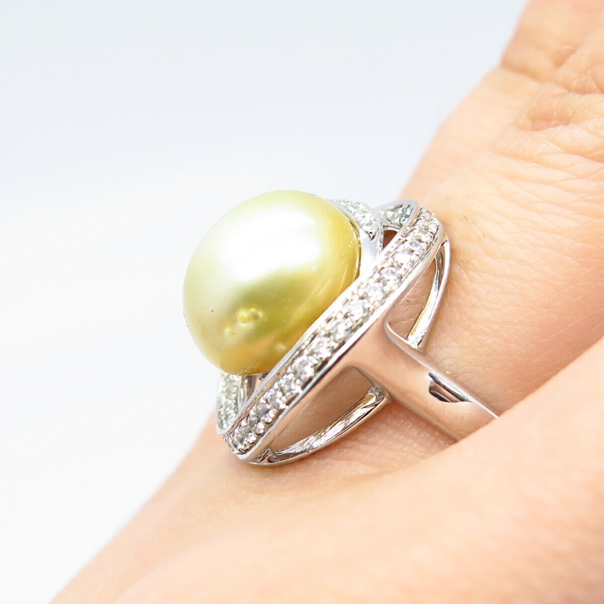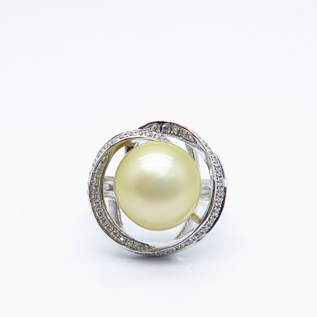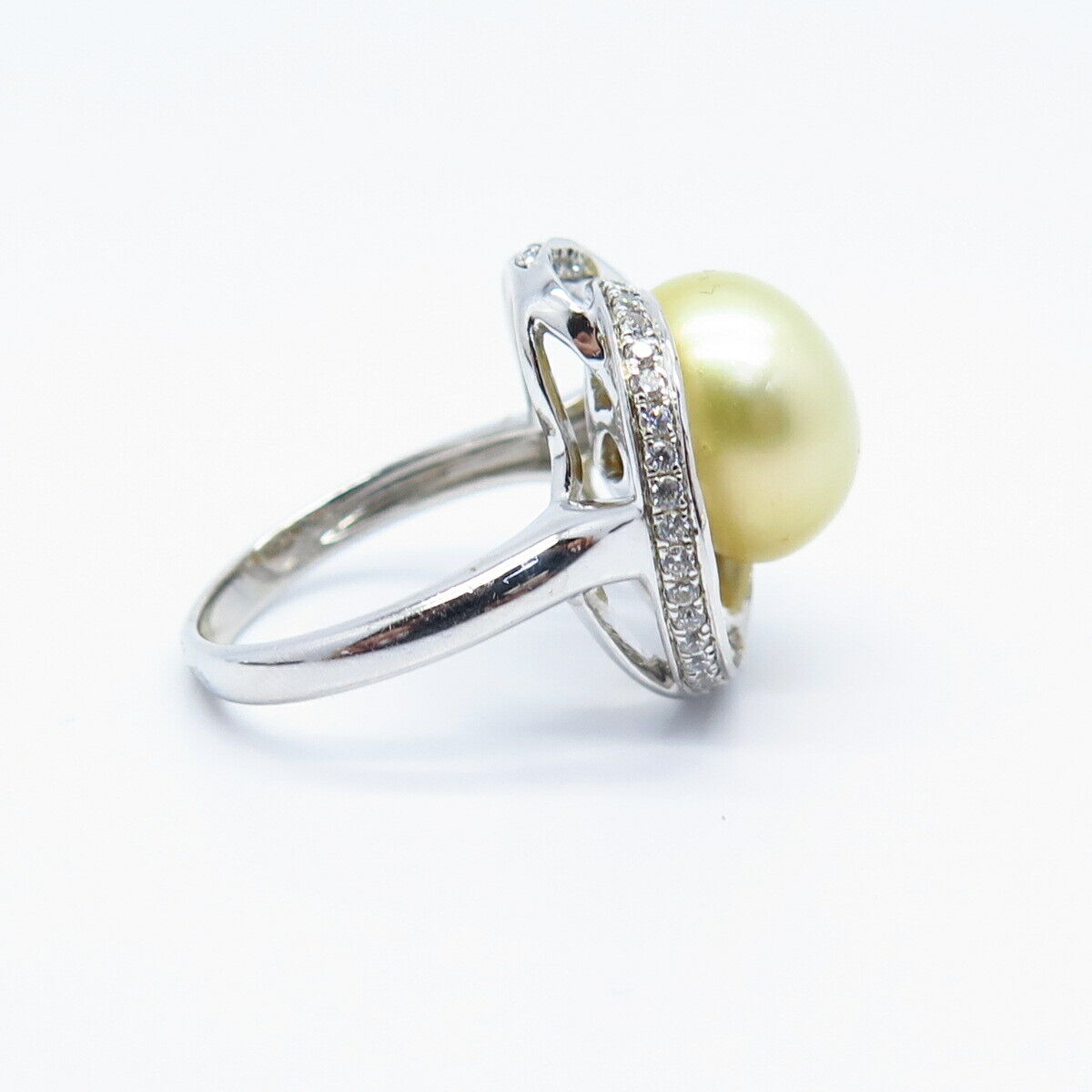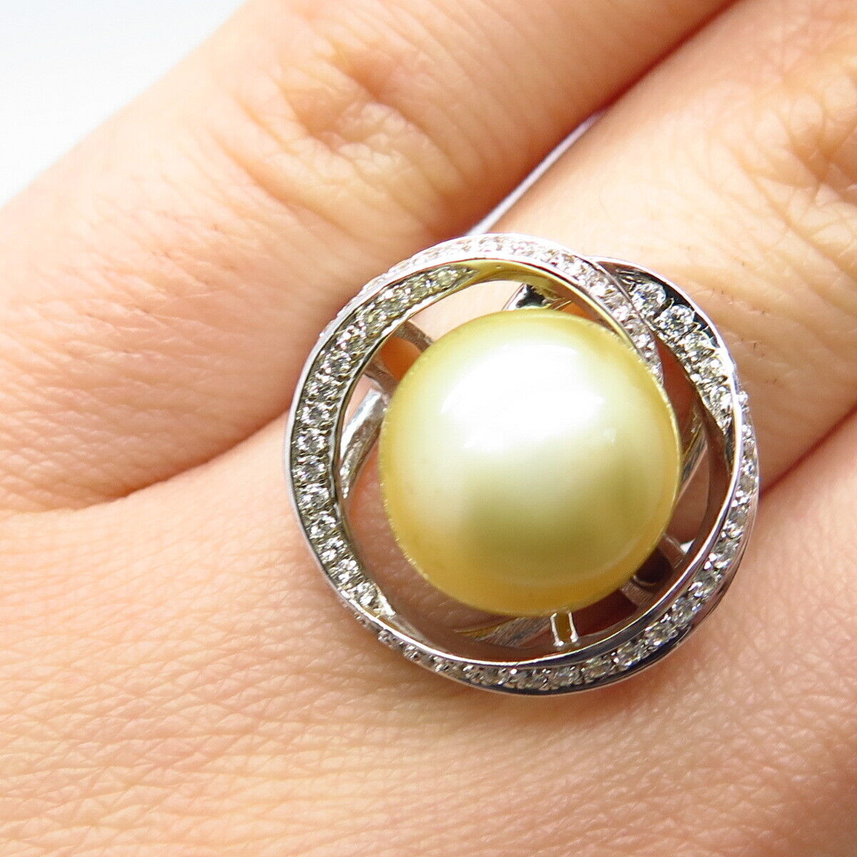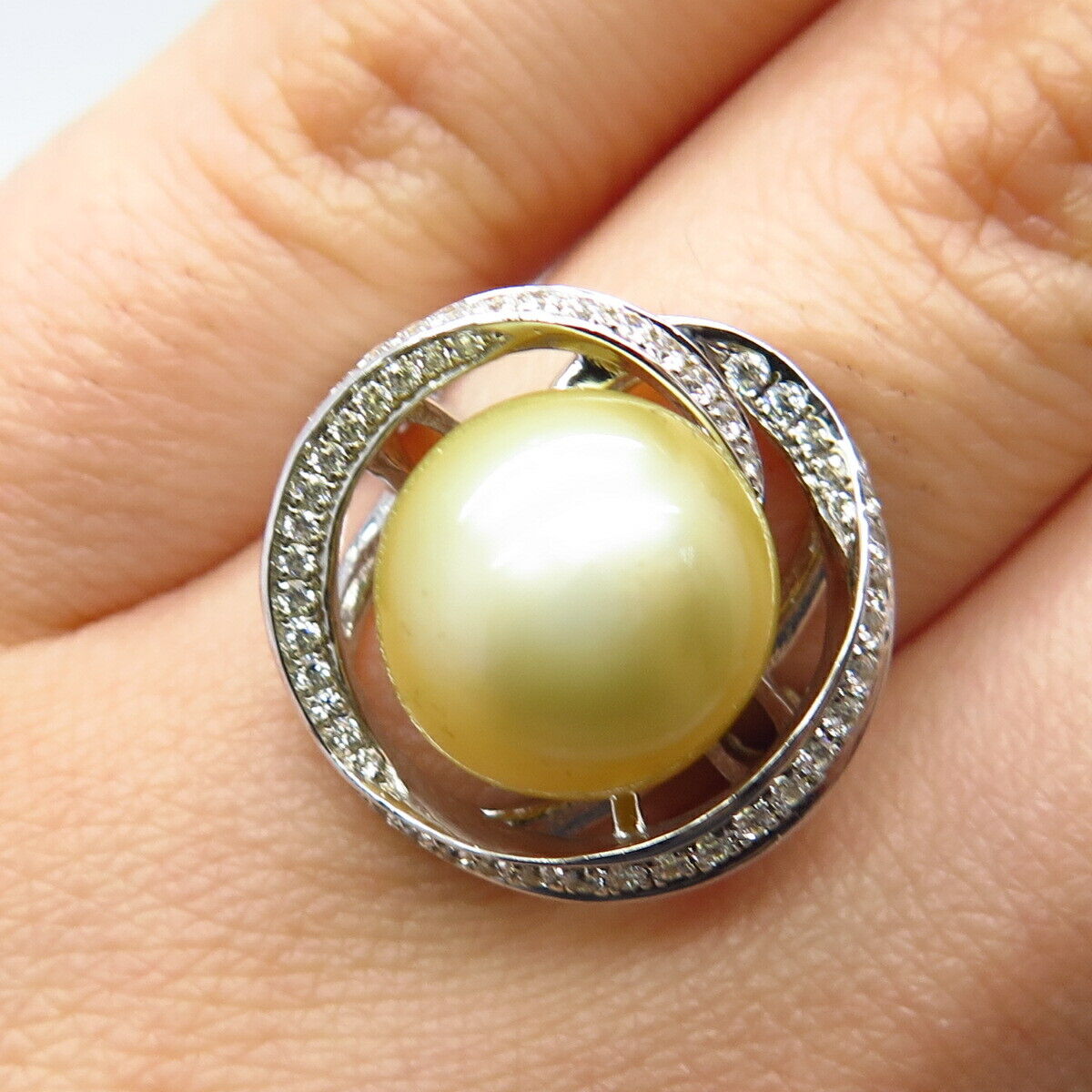 925 Sterling Silver Faux Pearl & Pave C Z Ring Size 6