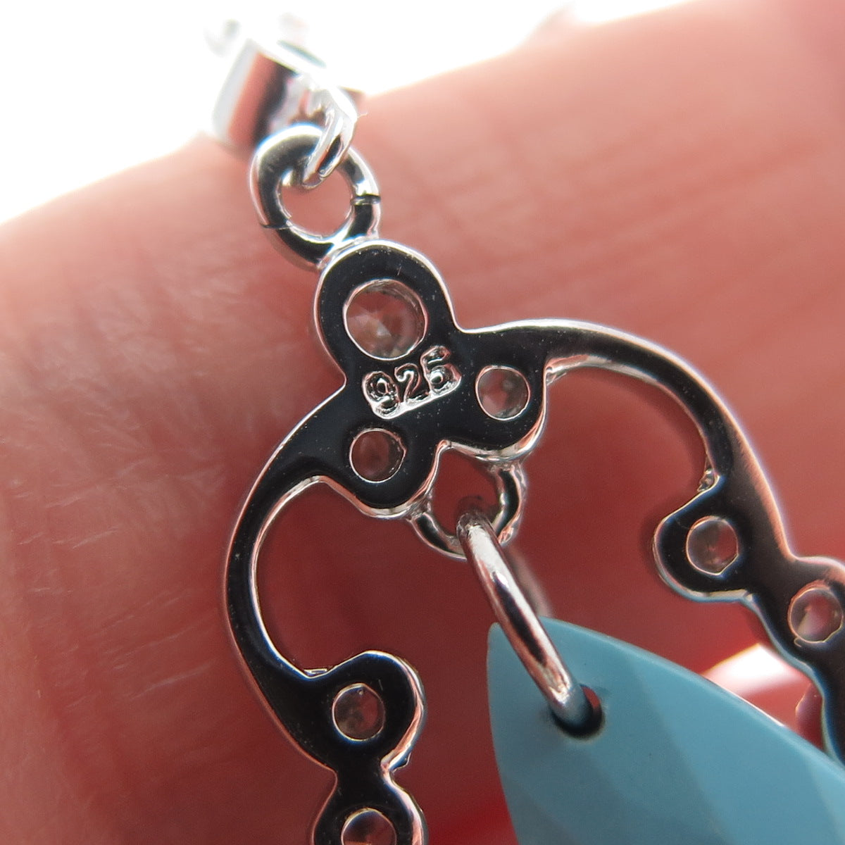925 Sterling Silver Faux Turquoise & C Z Dangle Earrings