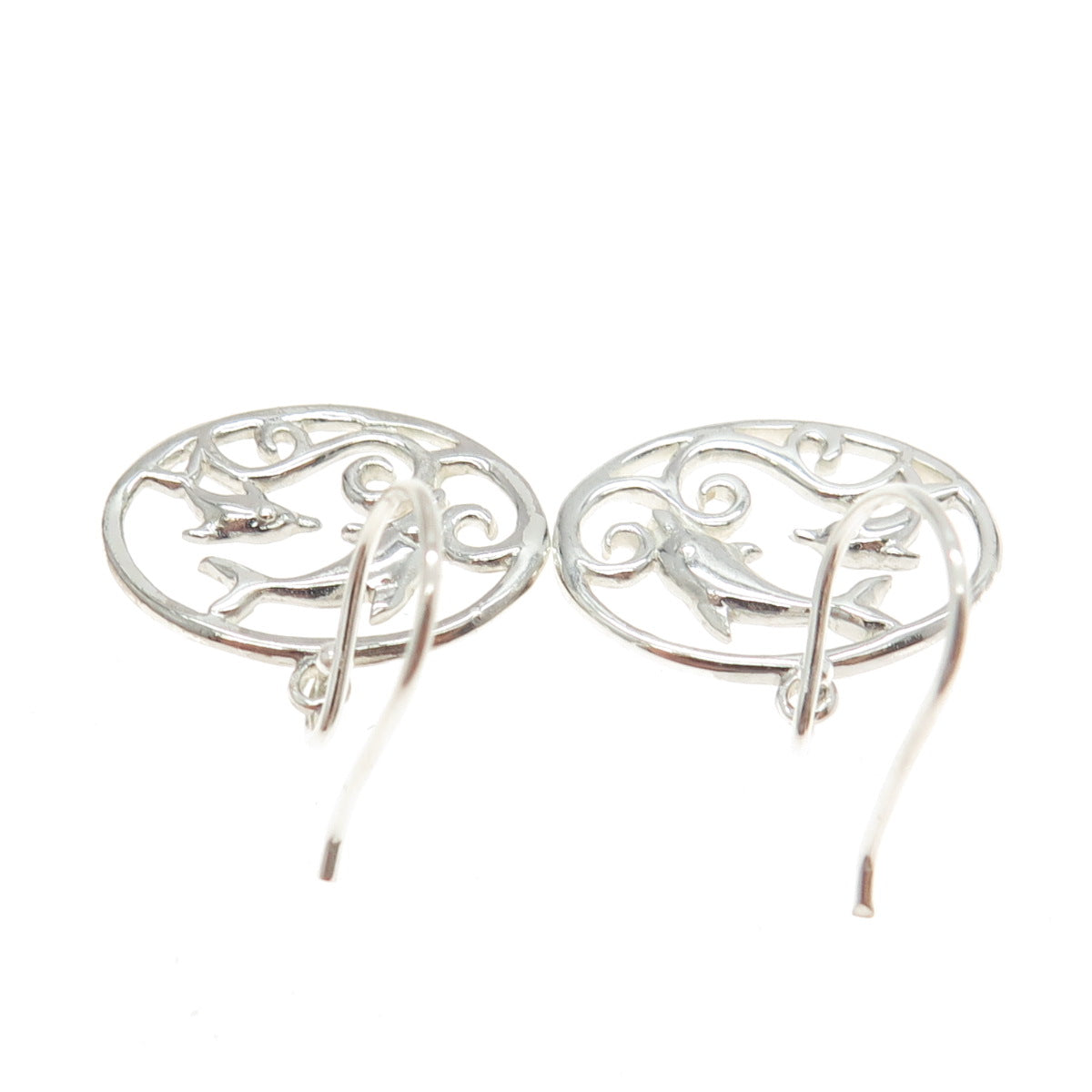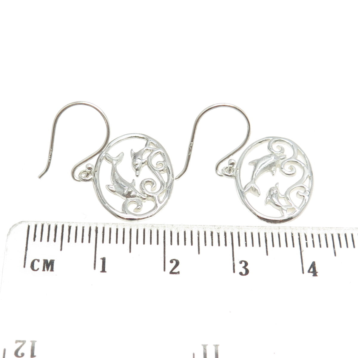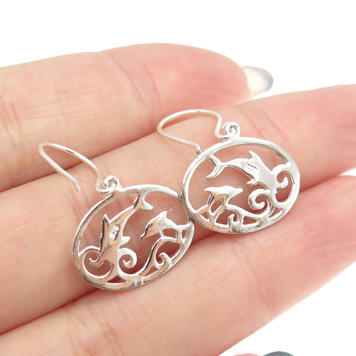 925 Sterling Silver Friendly Dolphin Dangling Earrings
