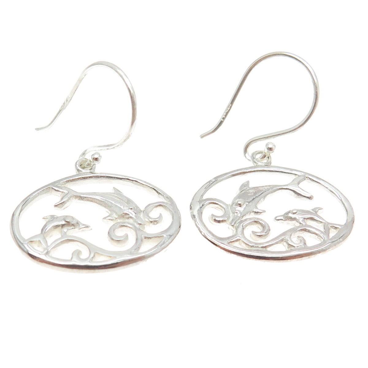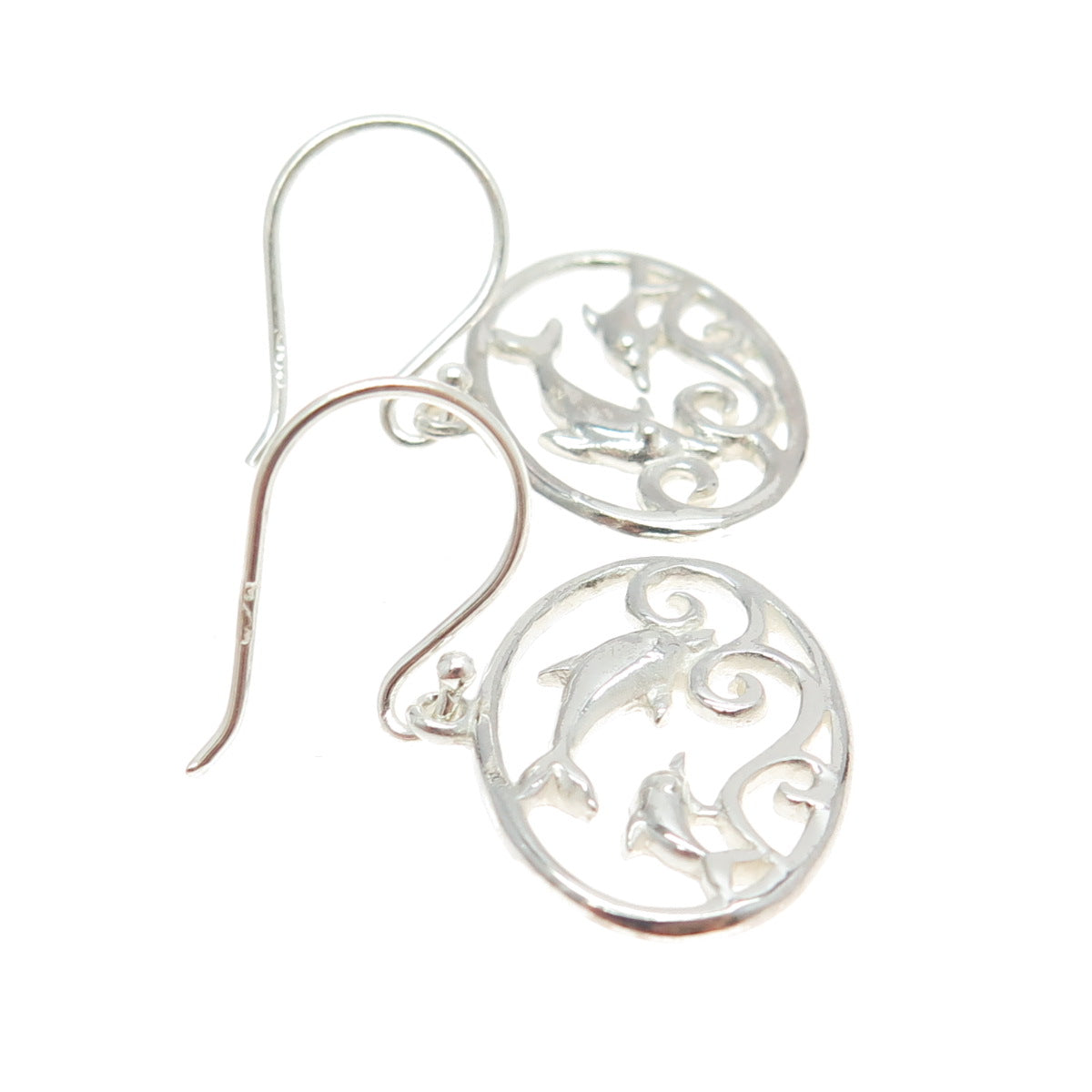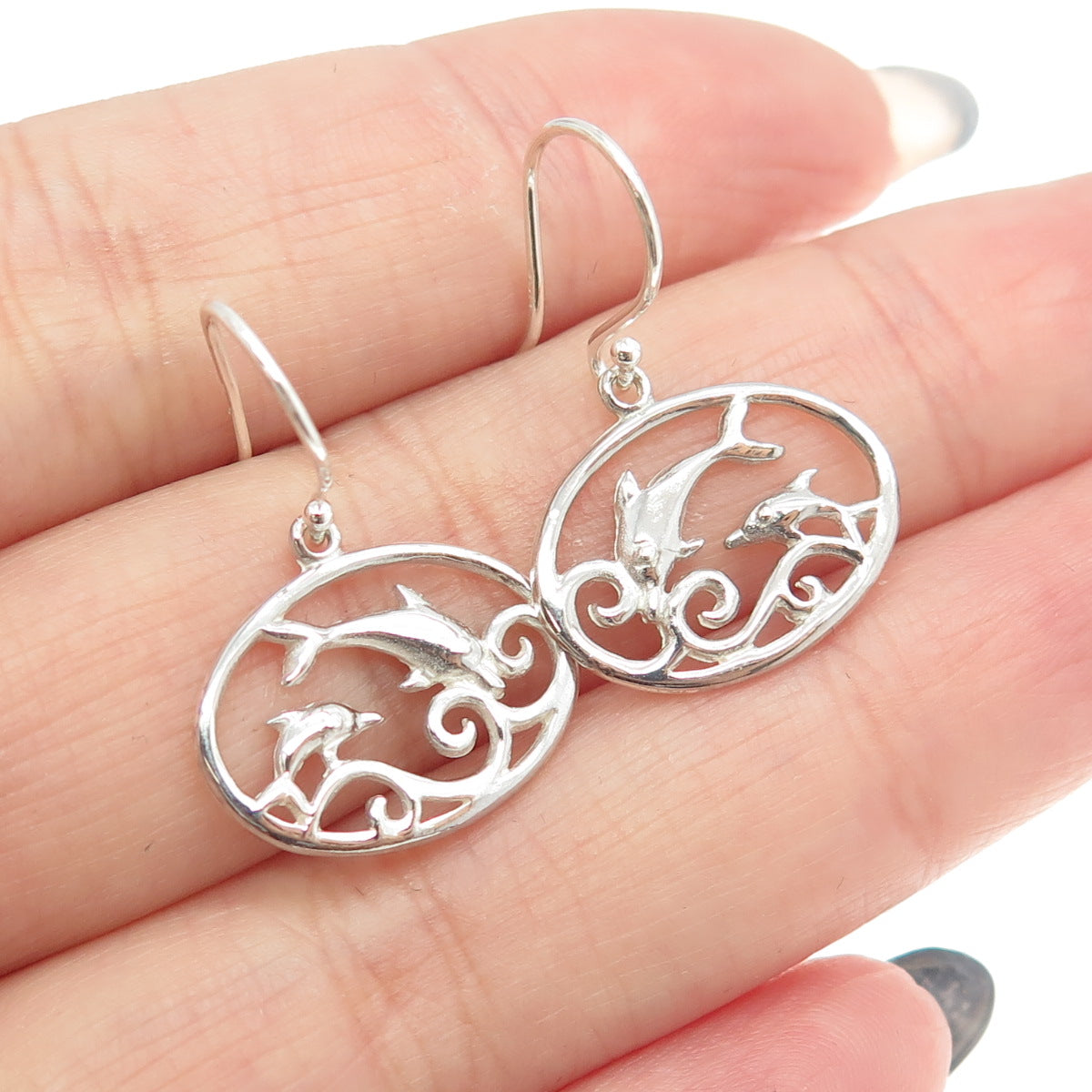 925 Sterling Silver Friendly Dolphin Dangling Earrings