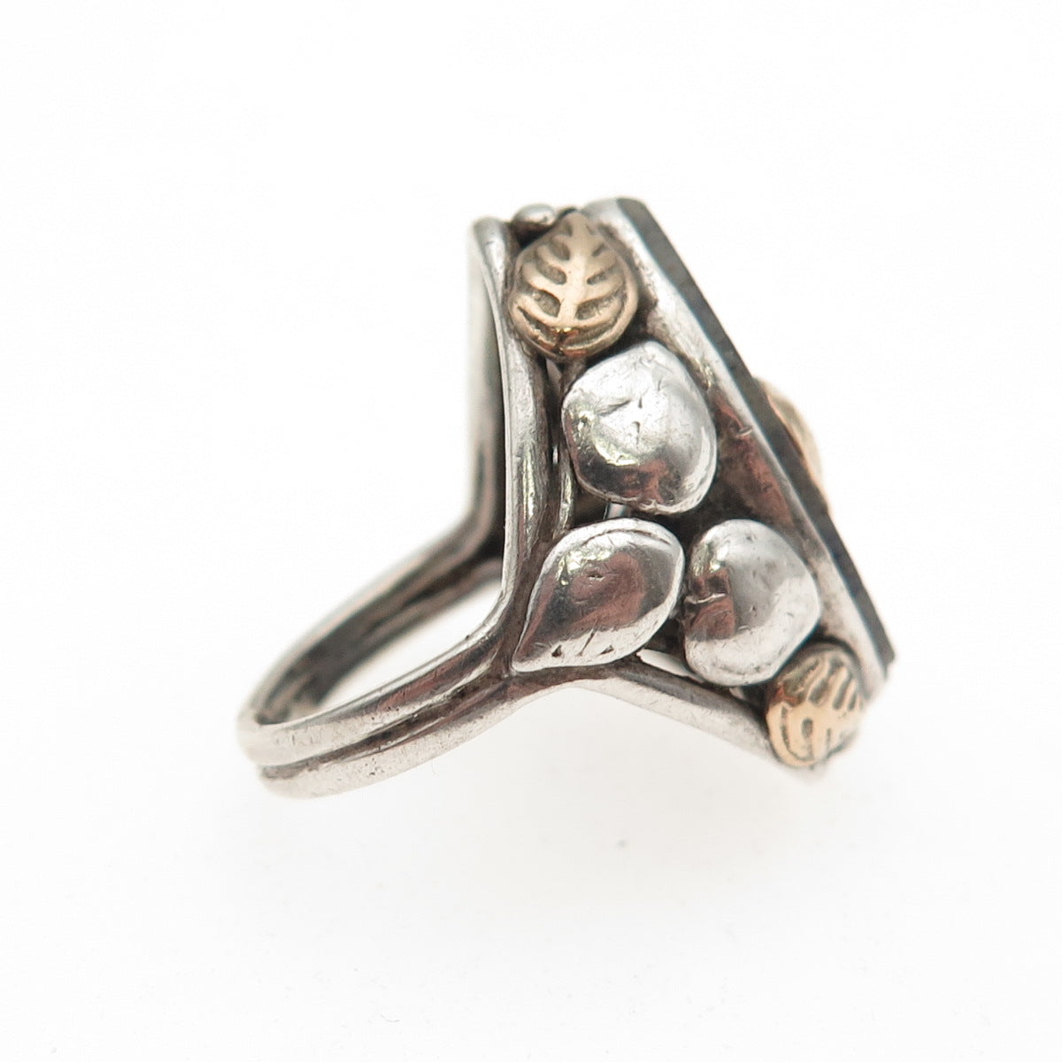 925 Sterling Silver & Gold Antique Victorian Real Lapis Heart Ring Size 2.25