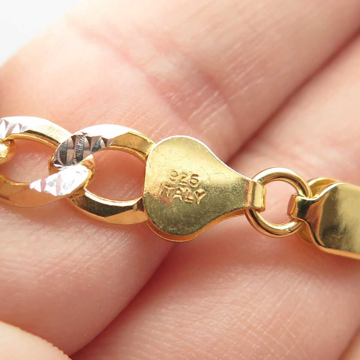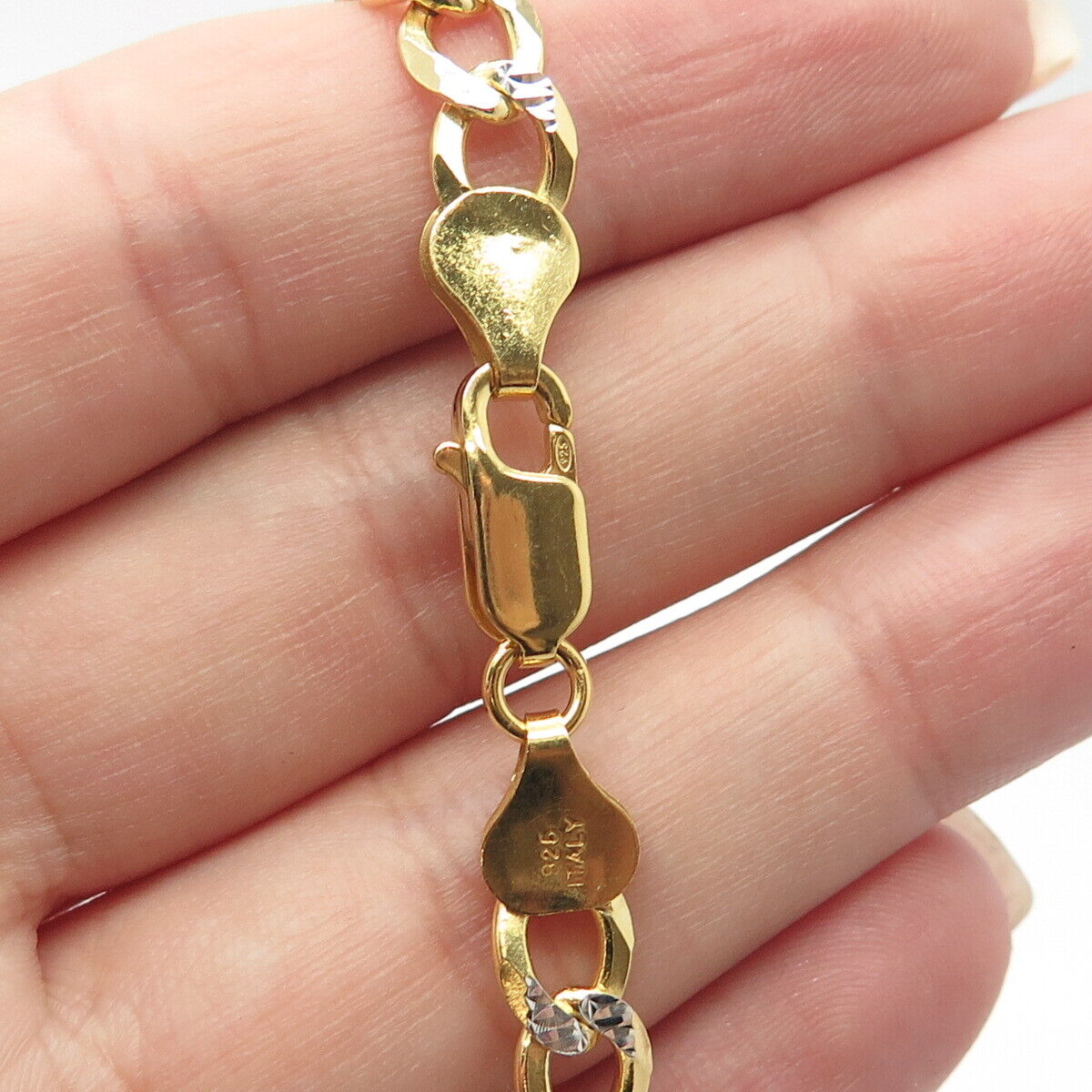 925 Sterling Silver Gold Plated 2-Tone Italy P. Lux Cuban Chain Necklace 18"