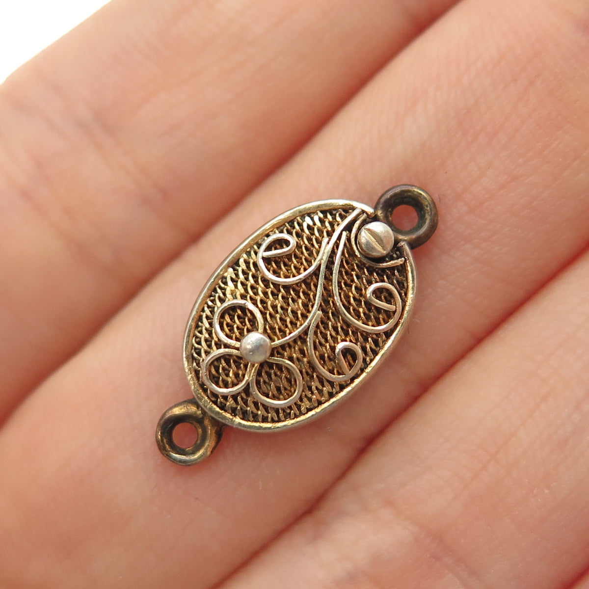 925 Sterling Silver Gold Plated Antique Bracelet / Necklace Flower Box Lock