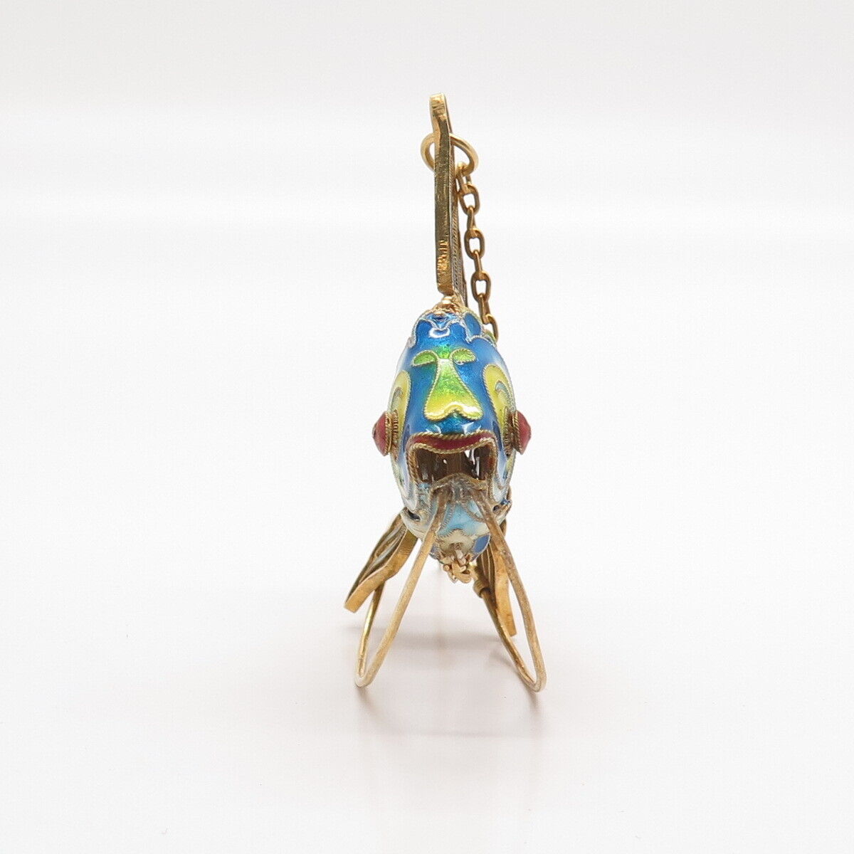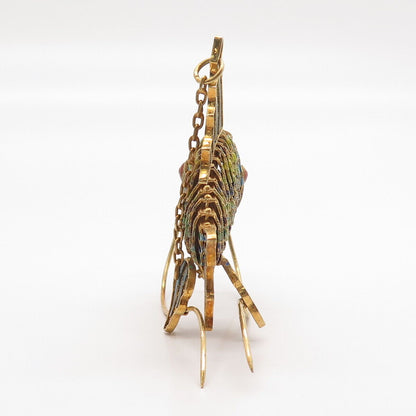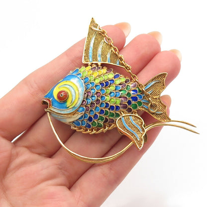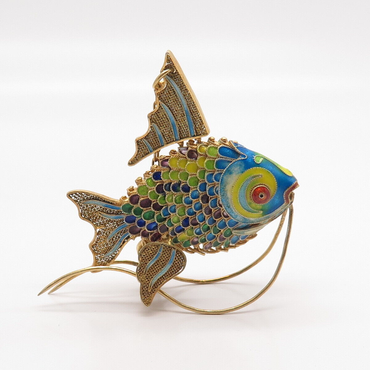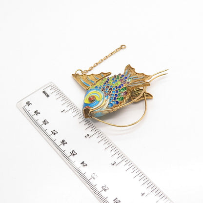 925 Sterling Silver Gold Plated Antique Enamel Chinese Koi Fish Articulated Fob