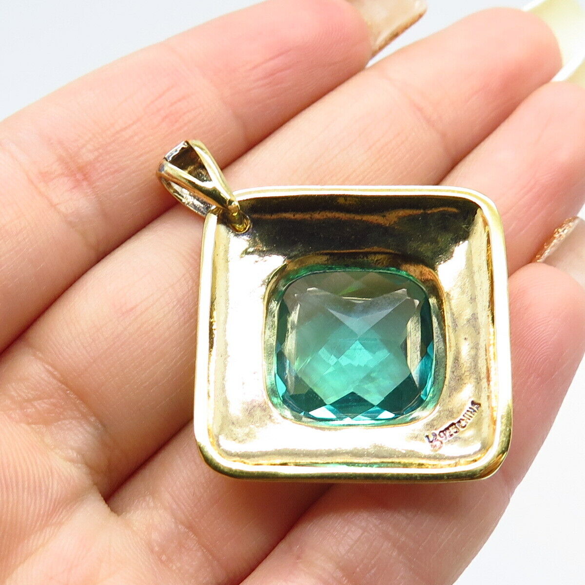 925 Sterling Silver Gold Plated Aquamarine-Tone C Z Hammered Finish Pendant